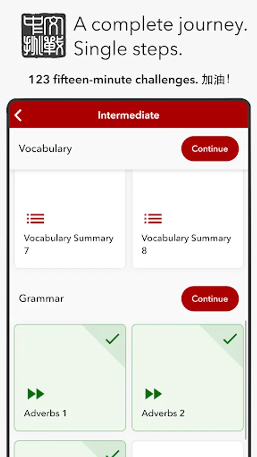Each challenge is paired with an HSK level so that you know you're learning the material you need to pass that exam!