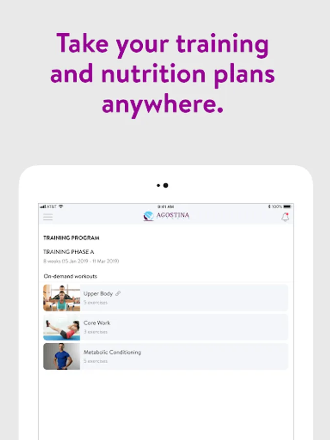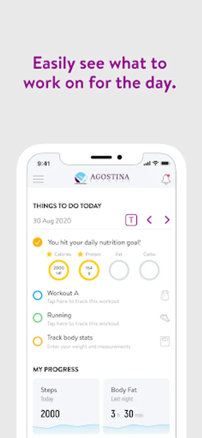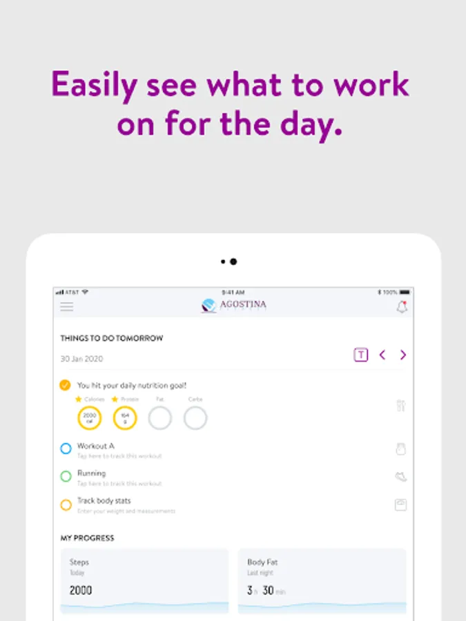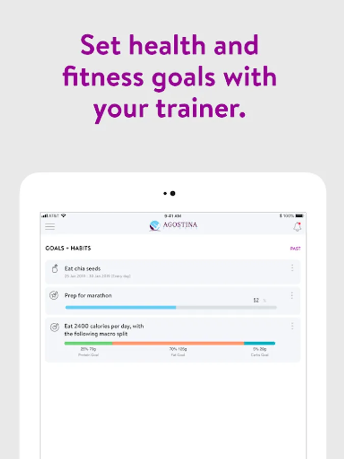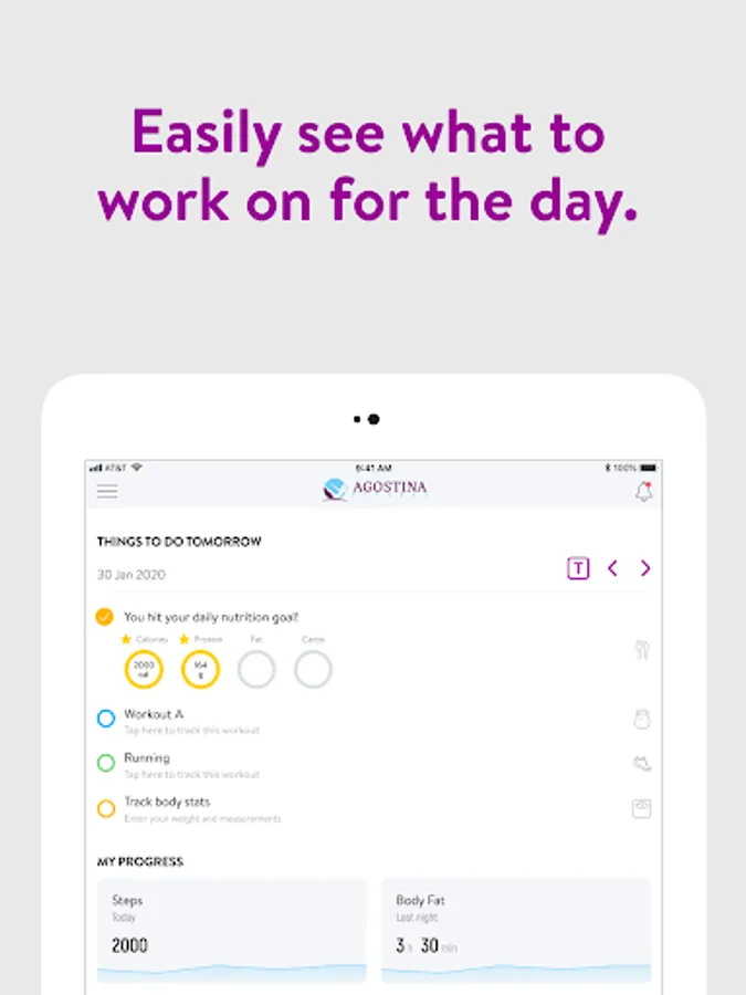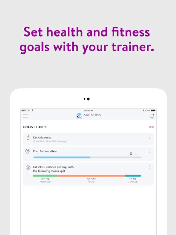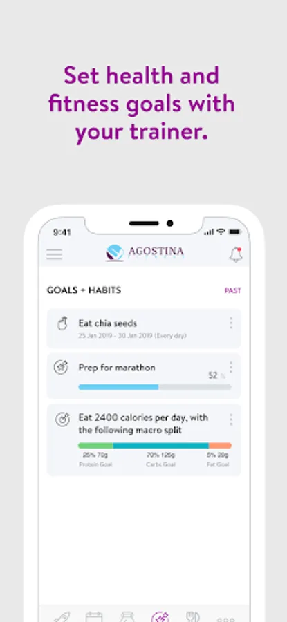 With the Agostina Fitness App, you can start tracking your workouts and meals, measuring results, and achieving your fitness goals, all with the help of your personal trainer.