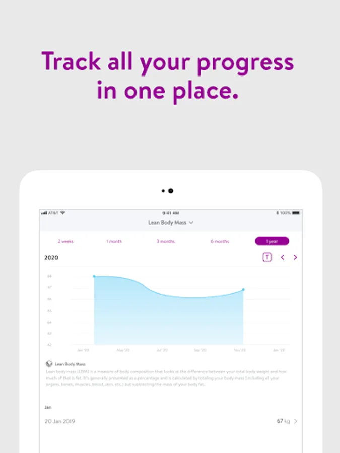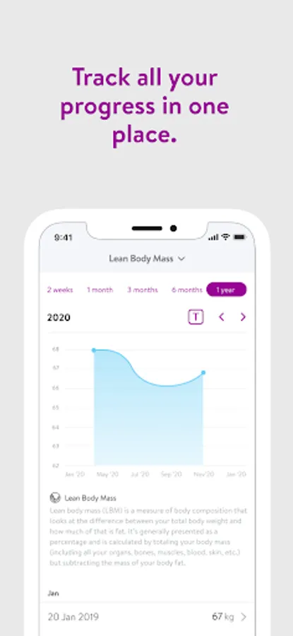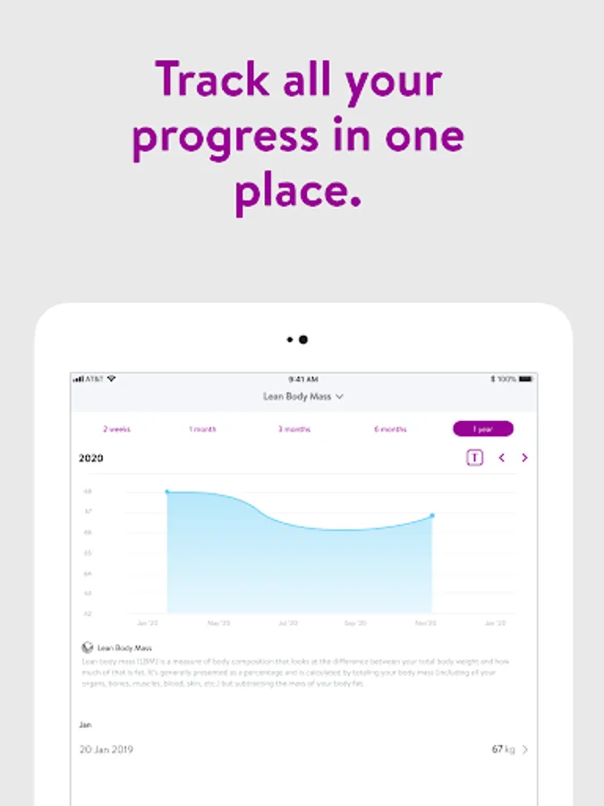 - Track body measurements and take progress photos