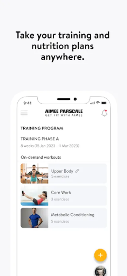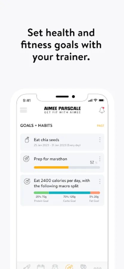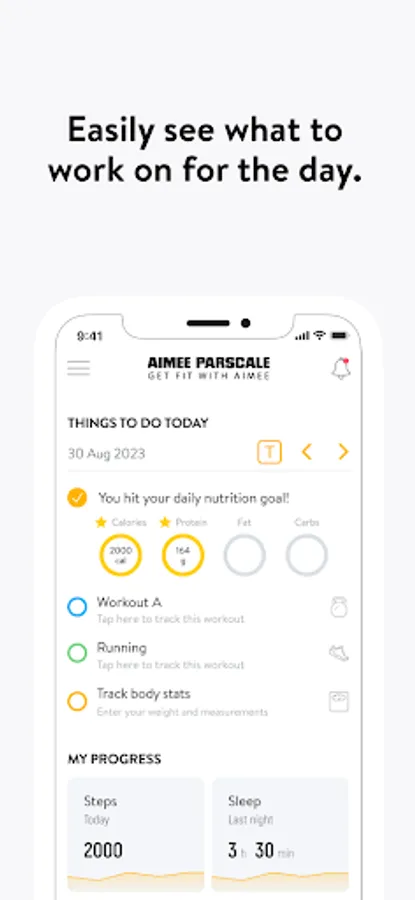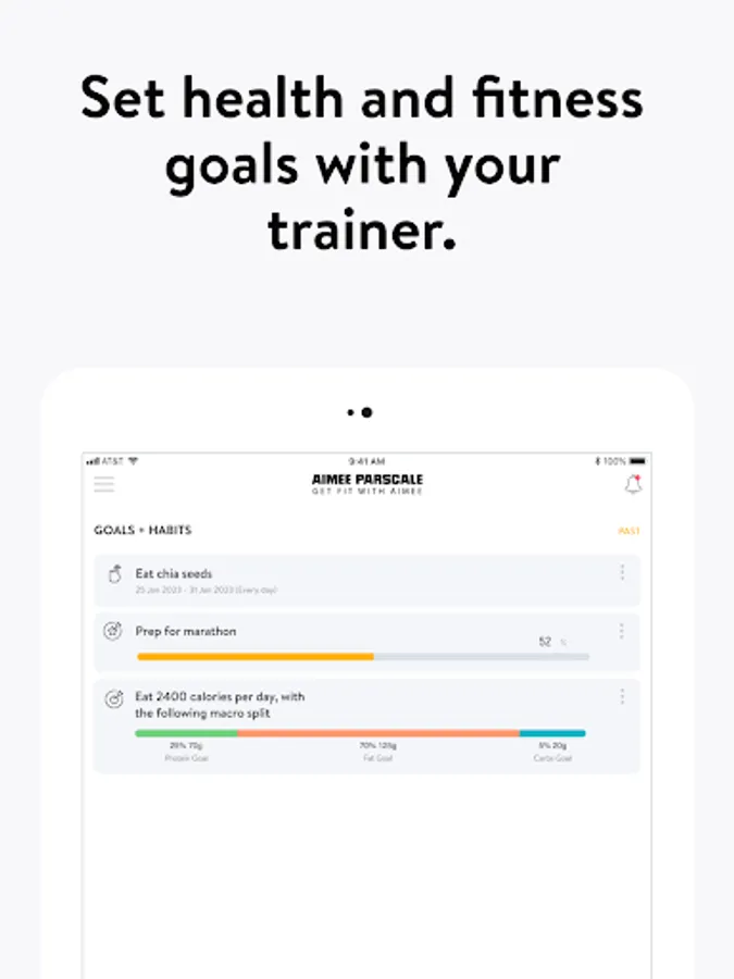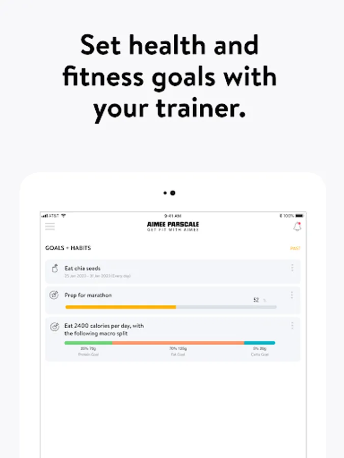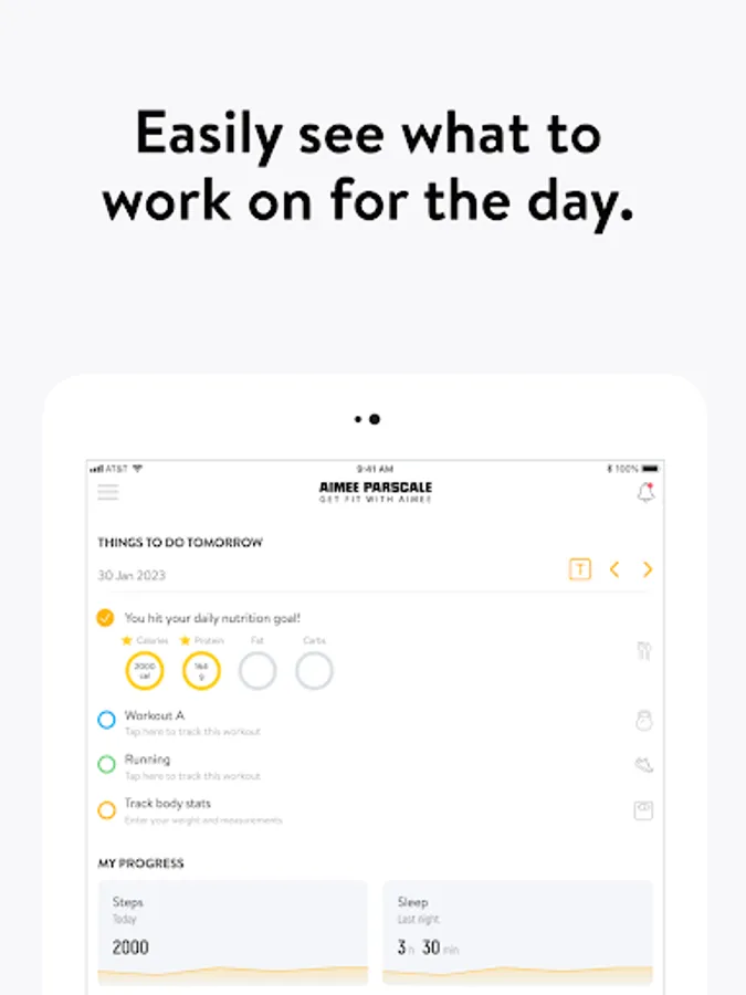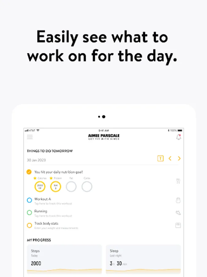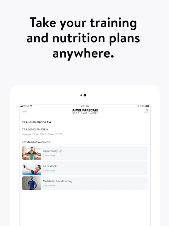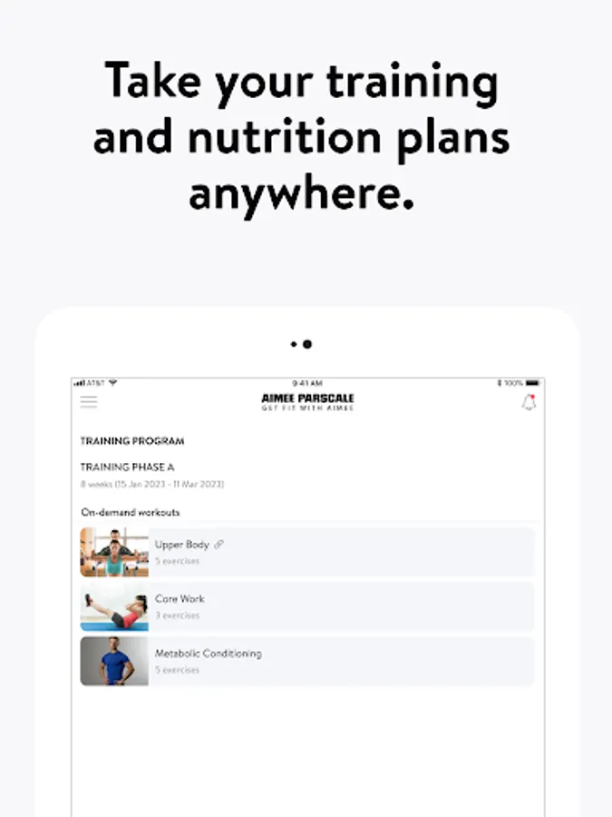 With the Bodyfit with Aimee App, you will have access to workout programs designed specifically to help you reach your fitness and health goals! You can follow & track your workouts, your nutrition, your lifestyle habits, measurements and results–all with the help of your coach.
