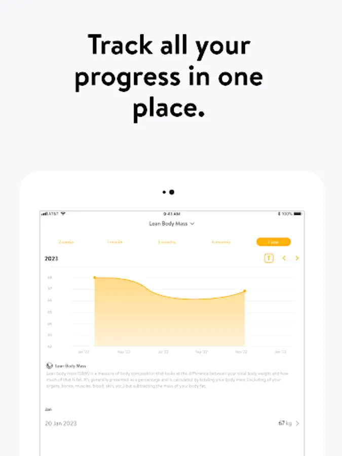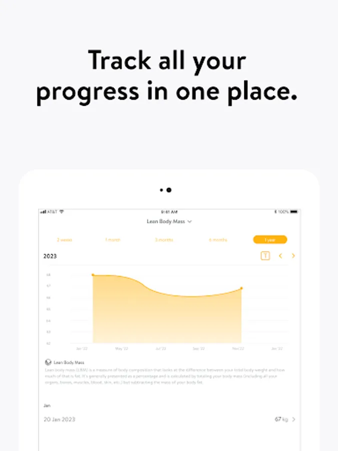 - Connect to other wearable devices and apps like the Apple Health App, Garmin, Fitbit, MyFitnessPal, and Withings devices to track workouts, sleep, nutrition, and body stats and composition