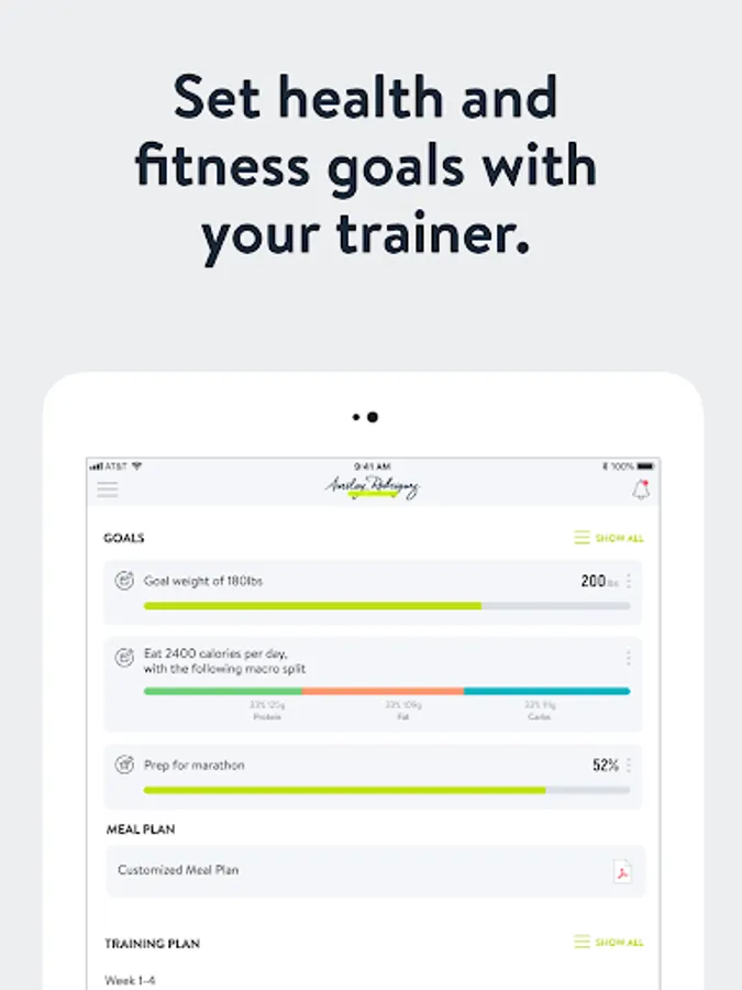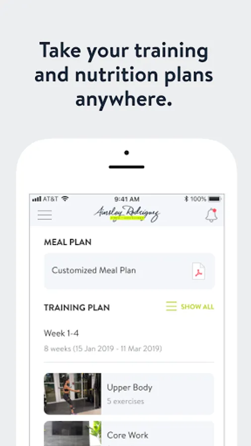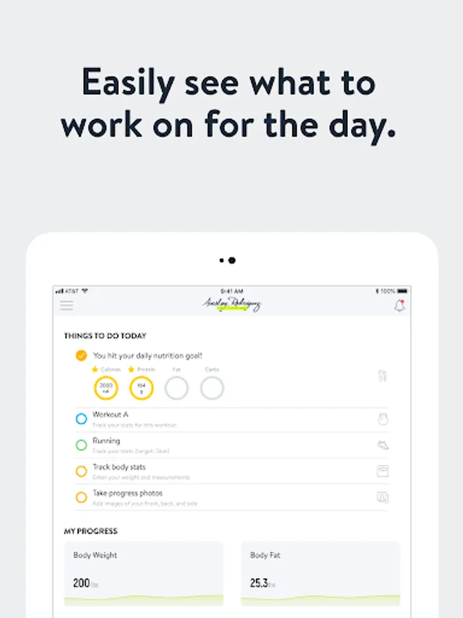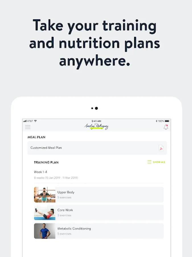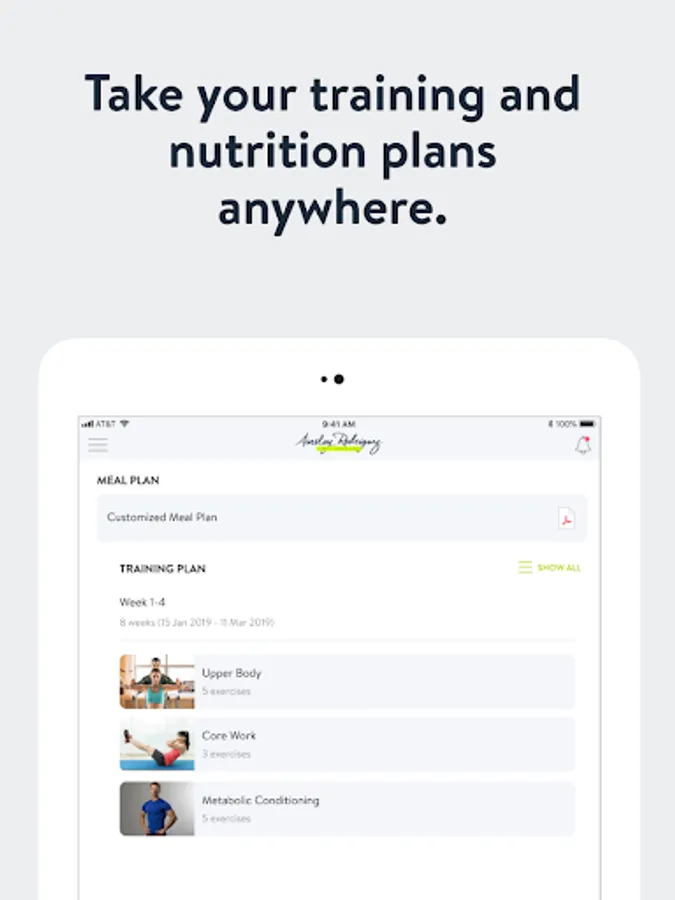 With the Ainsley Rodriguez App, you can start tracking your workouts and meals, measuring results, and achieving your fitness goals