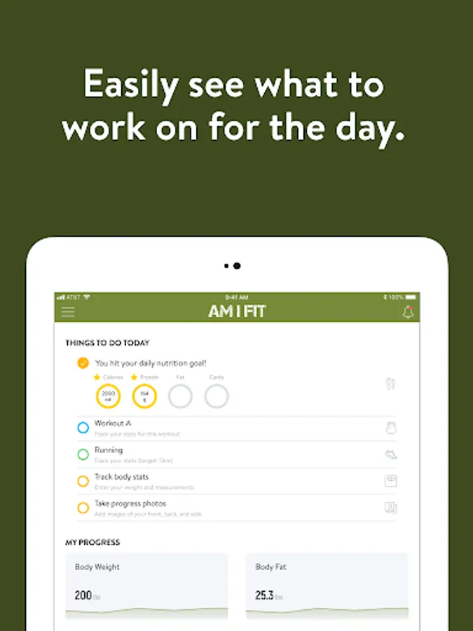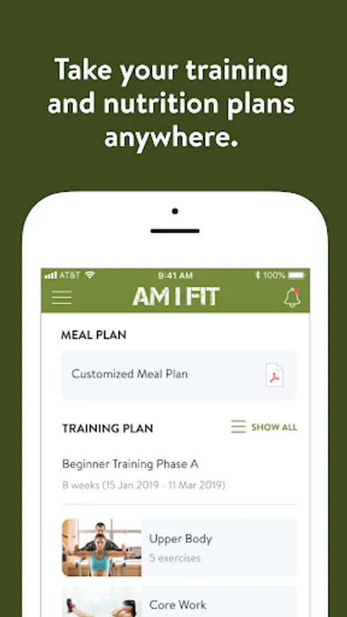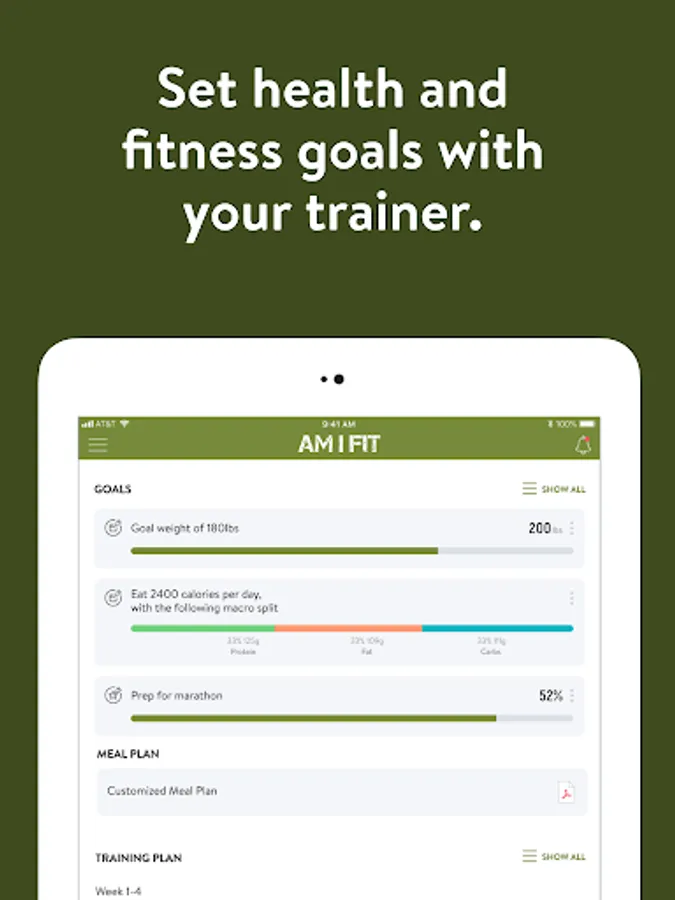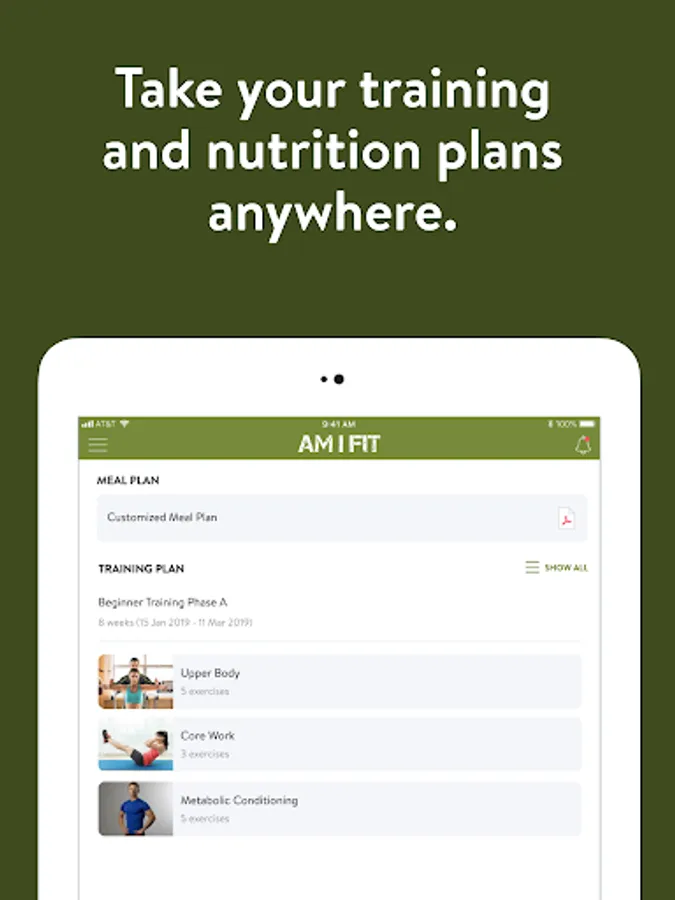 With the AM I FIT Accountability Coach App, you can start tracking your workouts and meals, measuring results, and achieving your fitness goals, all with the help of your personal trainer.