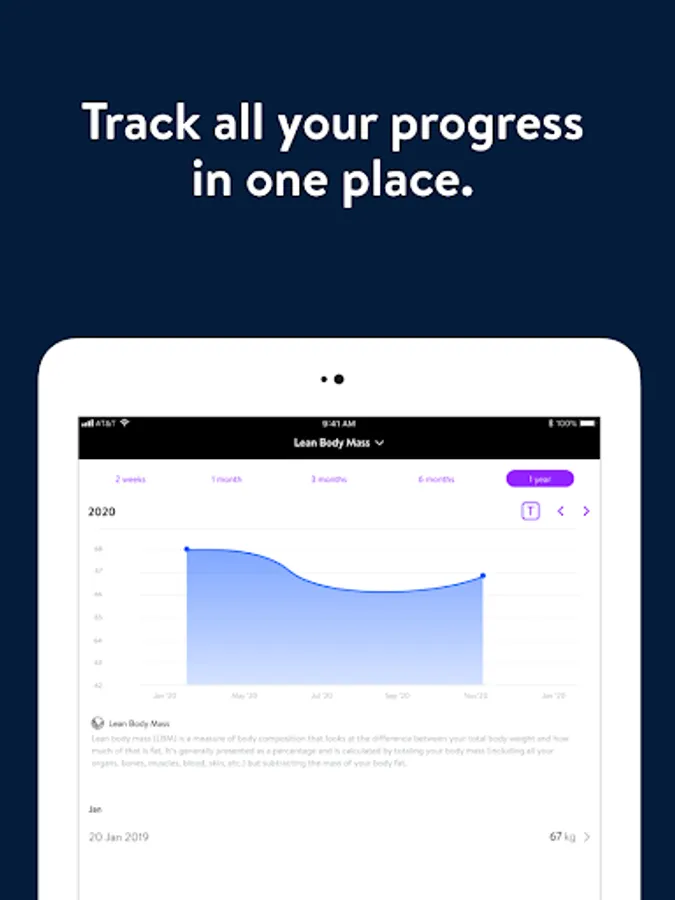 -Connect to wearable devices like Apple Watch (synced to Health app), Fitbit and Withings to sync body stats instantly