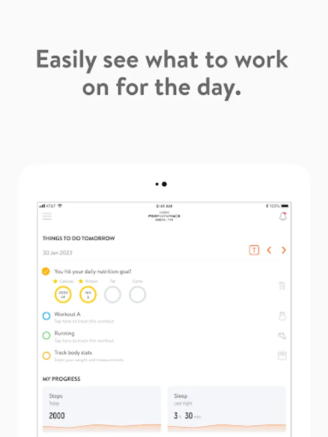 With the High Performance Health App, you will have access to workout programs designed specifically to help you reach your fitness and health goals! You can follow & track your workouts, your nutrition, your lifestyle habits, measurements and results–all with the help of your coach.