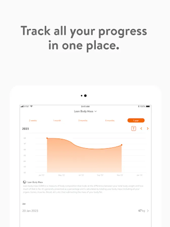 - Connect to other wearable devices and apps like the Apple Health App, Garmin, Fitbit, MyFitnessPal, and Withings devices to track workouts, sleep, nutrition, and body stats and composition