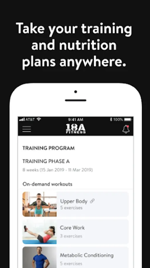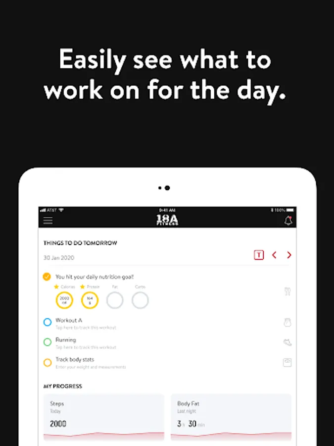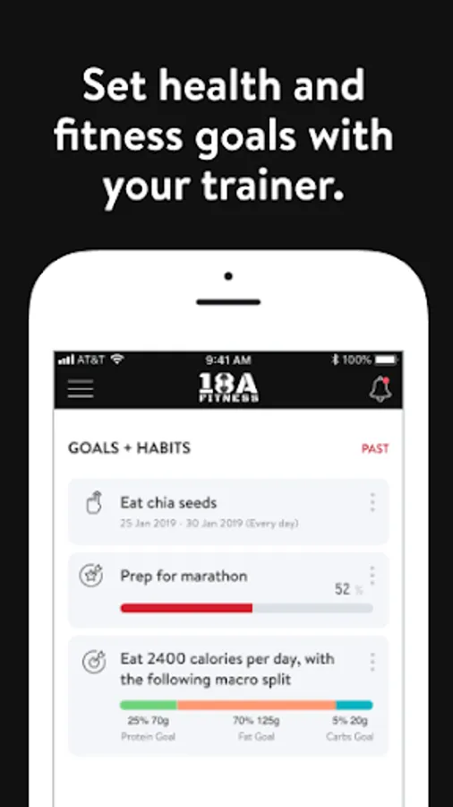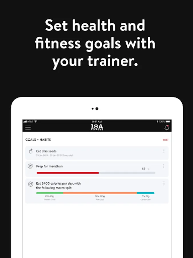 With the 18A Fitness App, you can start tracking your workouts and meals, measuring results, and achieving your fitness goals, all with the help of your personal trainer.