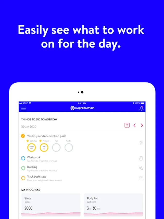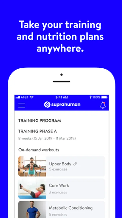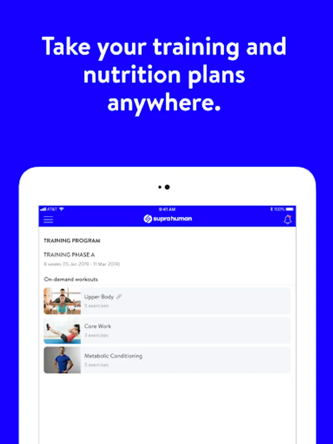 With the Supra Human App, you will have access to the Supra Human Team. We will guide your Training, Nutrition, and Mindset while providing a community of Winners to surround yourself with so you can tap into a powerful environment. In the app you will be able to: