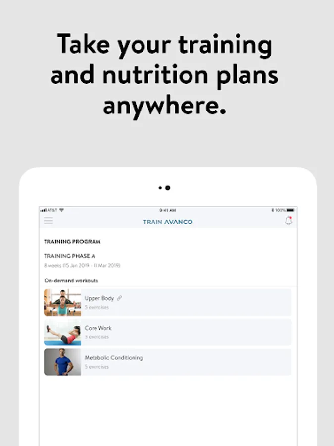 With the Train Avanco App, you will have access to workout programs designed specifically to help you reach your fitness and health goals! You can follow & track your workouts, your nutrition, your lifestyle habits, measurements and results–all with the help of your coach.