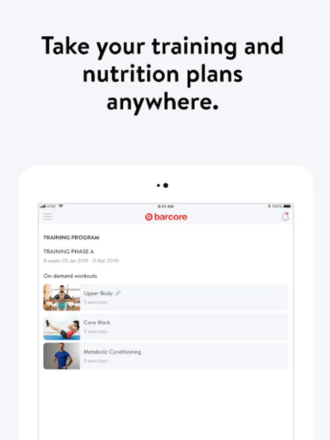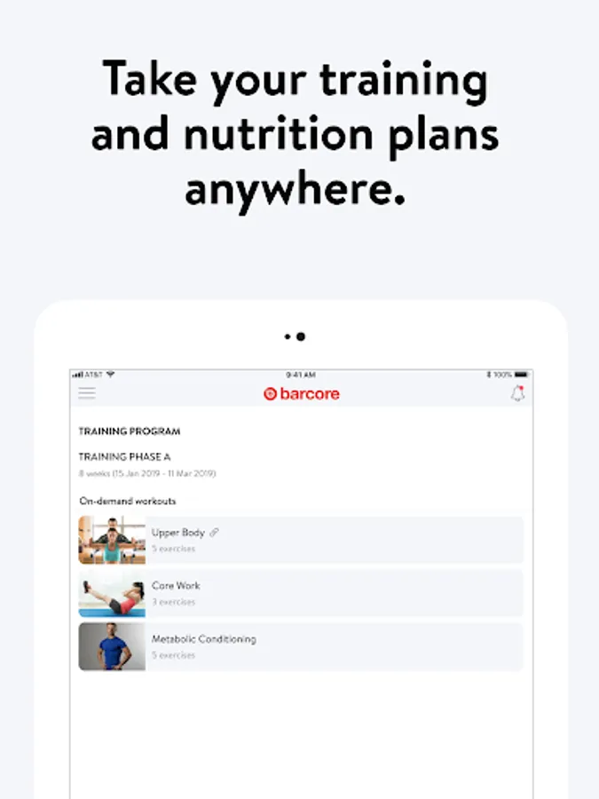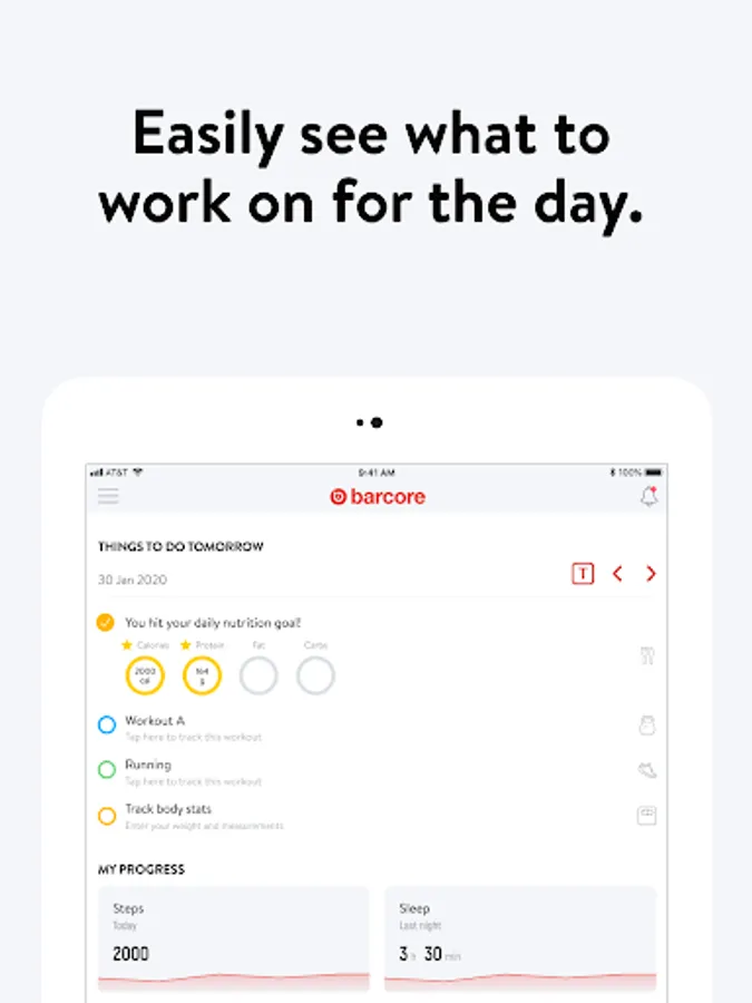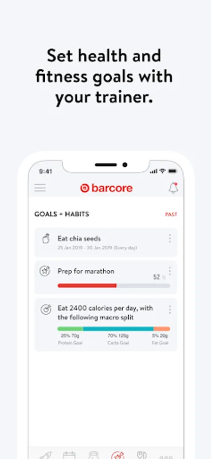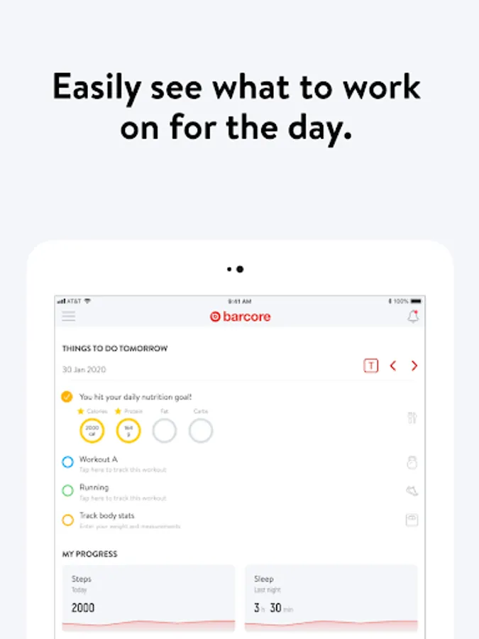 With Barcore, you're taking your first step to make fitness a lifelong habit! Discover exercises you like. and track progress for your workouts and meals, measuring results, and achieving your fitness goals, all with the help of your digital coach.