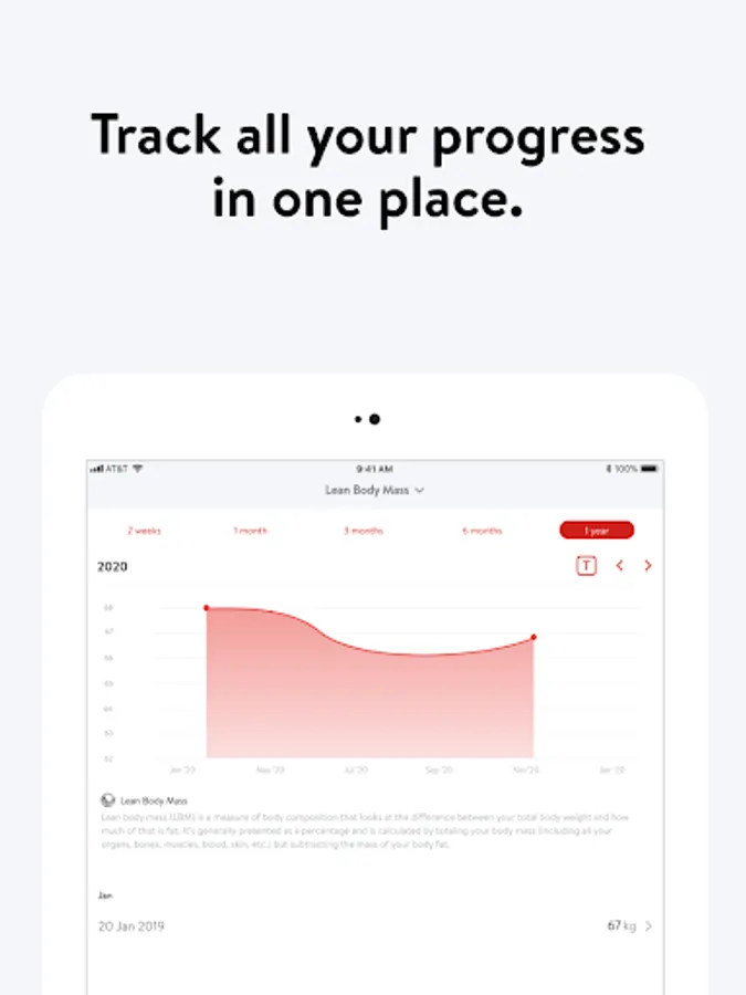 - Connect to wearable devices including Apple Watch (synced to Health app), Fitbit, and Withings to sync body stats instantly