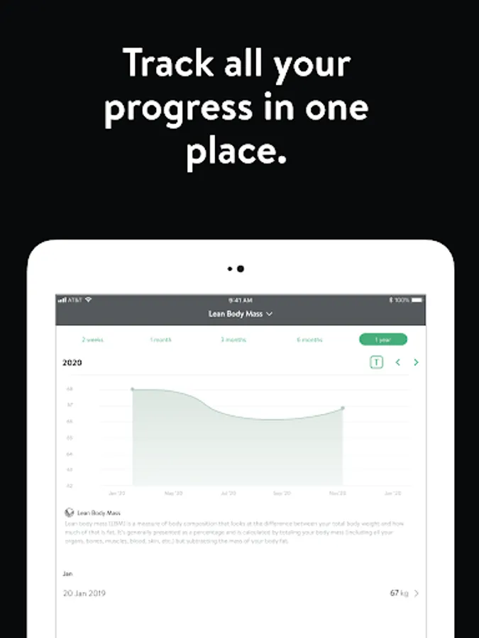 - Connect to wearable devices like Apple Watch (synced to Health app), Fitbit and Withings to sync body stats instantly