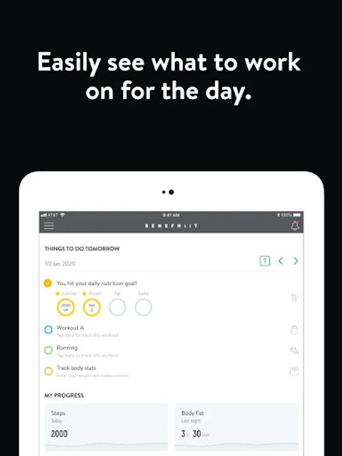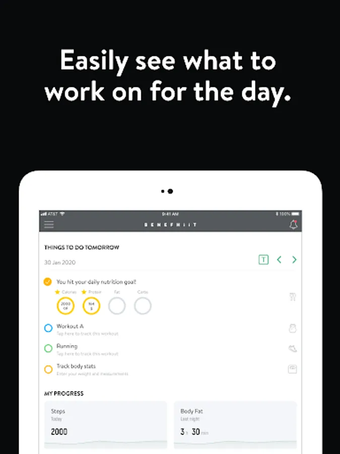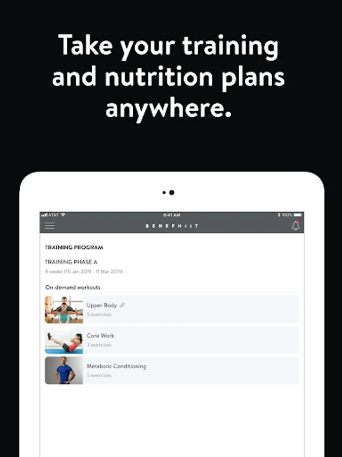 With the BENEFHIIT App, you can start tracking your workouts and meals, measuring results, and achieving your fitness goals, all with the help of your Benefhiit Performance Navigator.