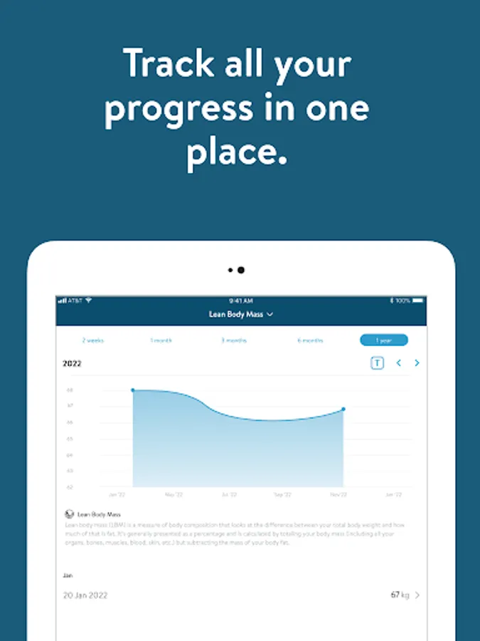 - Connect to other wearable devices and apps like the Apple Health App, Garmin, Fitbit, MyFitnessPal, and Withings devices to track workouts, sleep, nutrition, and body stats and composition
