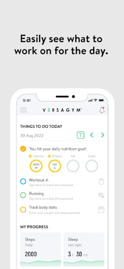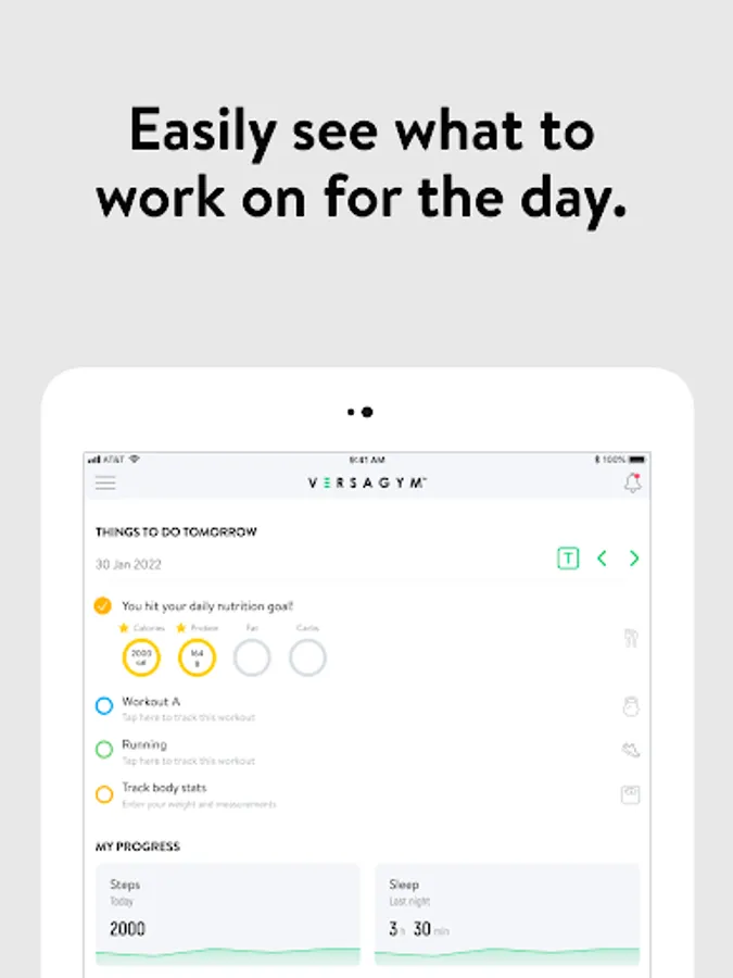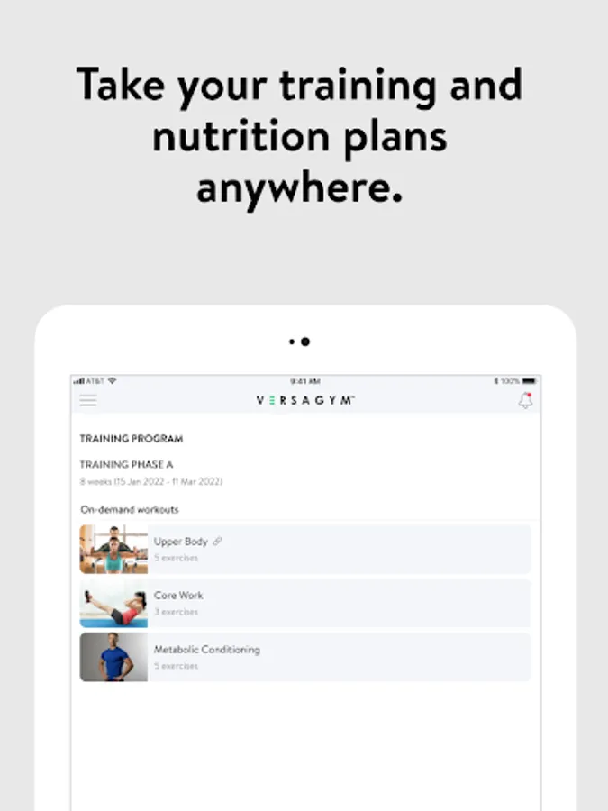 With the VERSAGYM™️ App, you will have access to workout programs designed specifically to help you reach your fitness and health goals! You can follow & track your workouts, your nutrition, your lifestyle habits, measurements and results–all with the help of your coach.