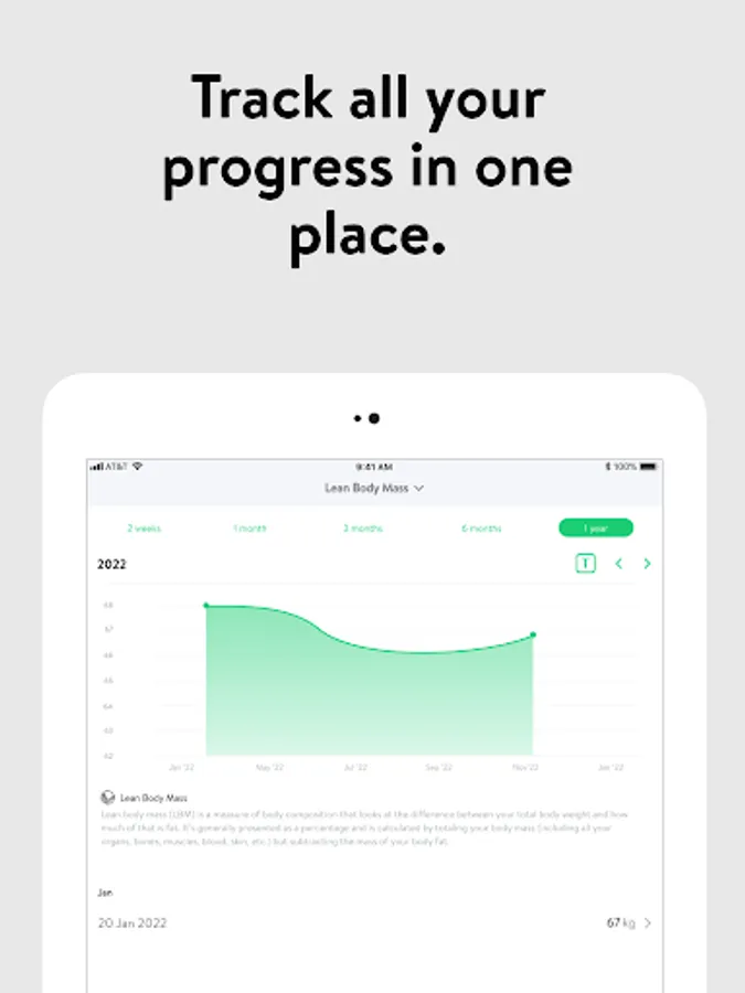 - Connect to other wearable devices and apps like the Apple Health App, Garmin, Fitbit, MyFitnessPal, and Withings devices to track workouts, sleep, nutrition, and body stats and composition
