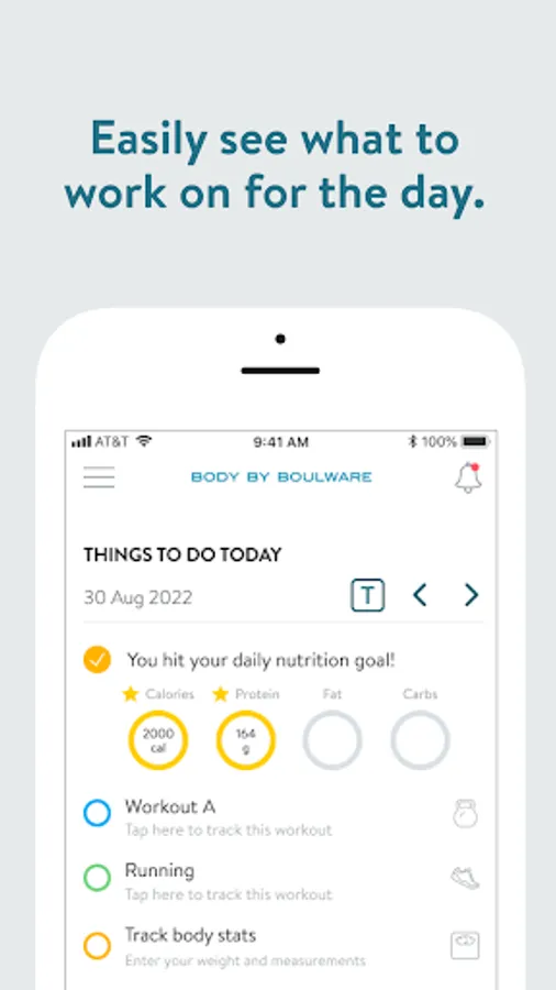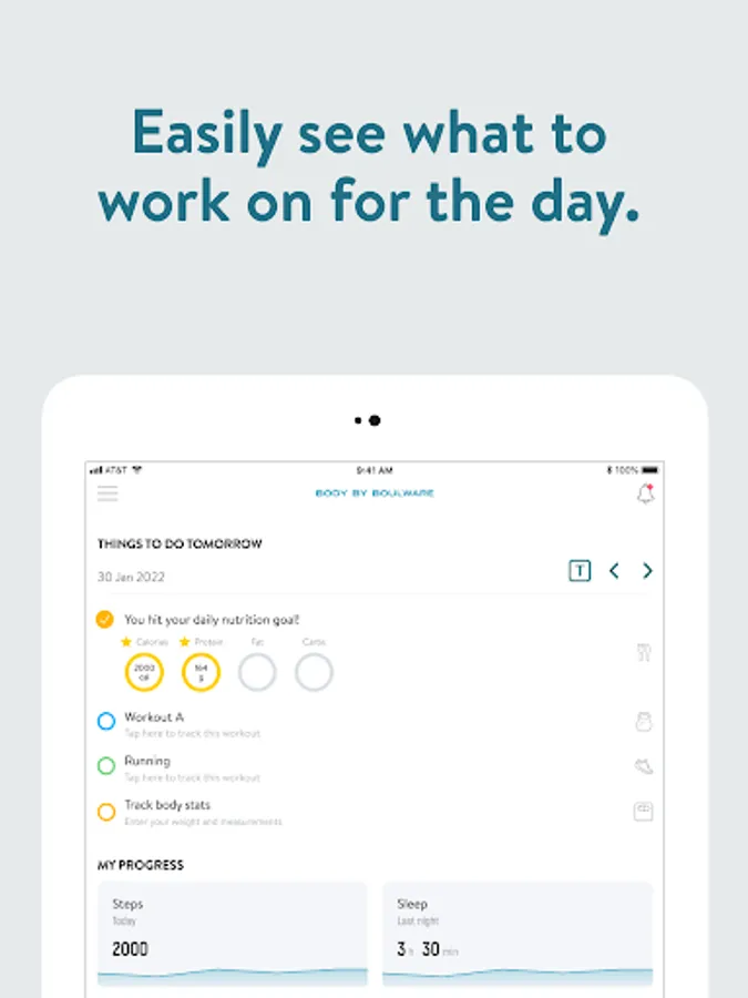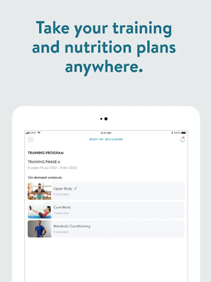 With the bodybyboulware App, you will have access to workout programs designed specifically to help you reach your fitness and health goals! You can follow & track your workouts, your nutrition, your lifestyle habits, measurements and results–all with the help of your coach.