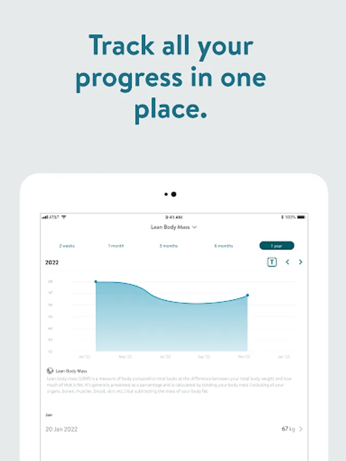 - Connect to other wearable devices and apps like the Apple Health App, Garmin, Fitbit, MyFitnessPal, and Withings devices to track workouts, sleep, nutrition, and body stats and composition