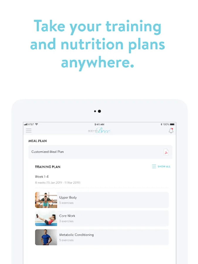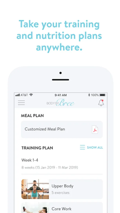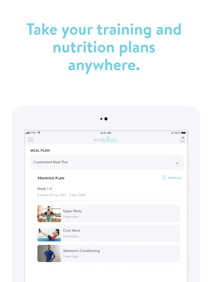 - Access to BodyByBree 8 week training plans and monthly continuation program