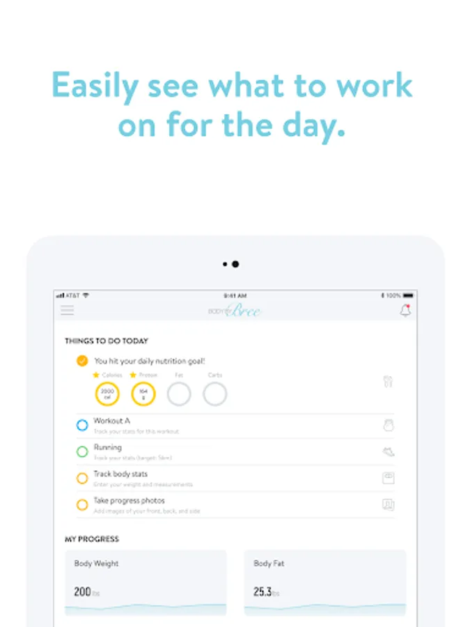 - Track body measurements and take progress photos