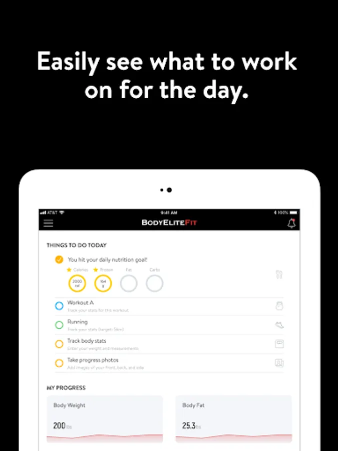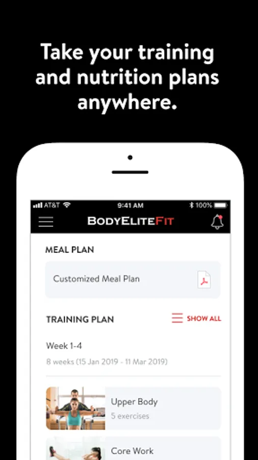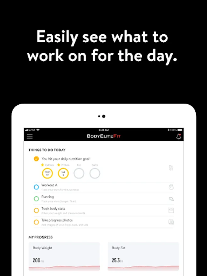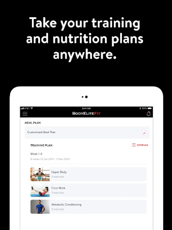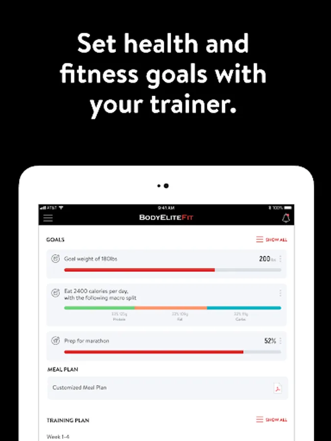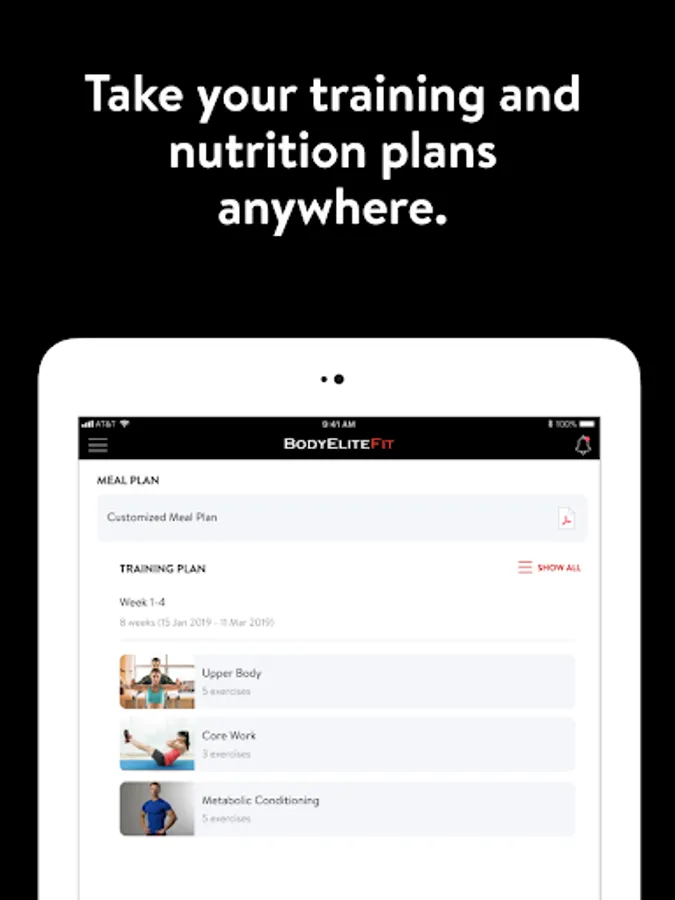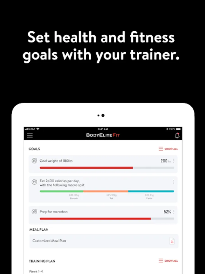 With the BodyEliteFit App, you can start tracking your workouts and meals, measuring results, and achieving your fitness goals, all with the help of your personal trainer.