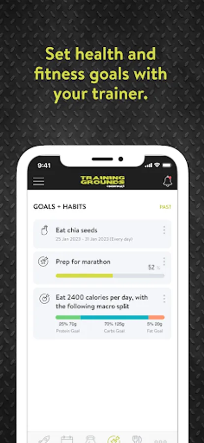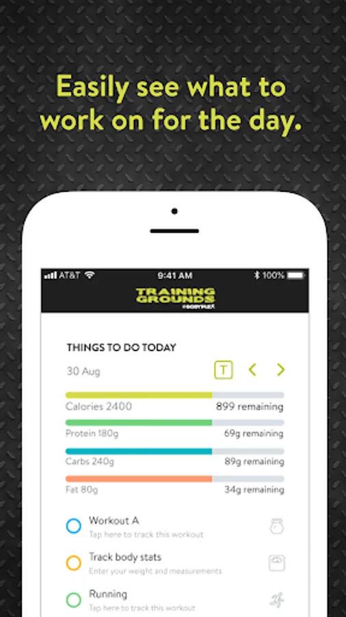 With the Training Grounds @ Bodyplex App, you can start tracking your workouts and meals, measuring results, and achieving your fitness goals, all with the help of your personal trainer.