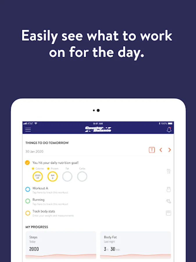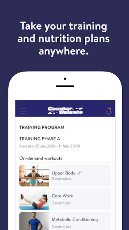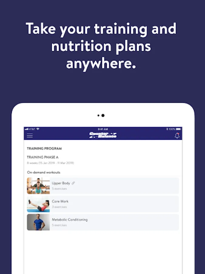 With the CBalanceTraining App, you can start tracking your workouts and meals, measuring results, and achieving your fitness goals, all with the help of your personal trainer.