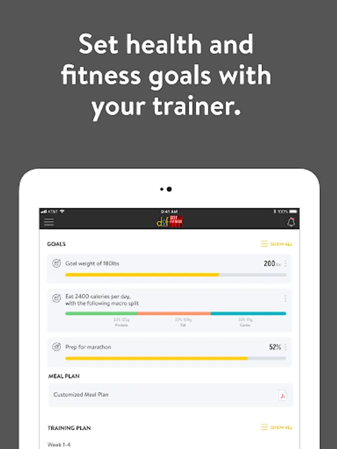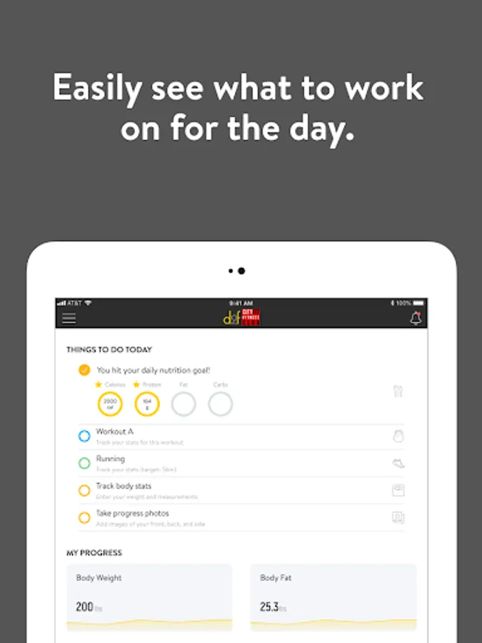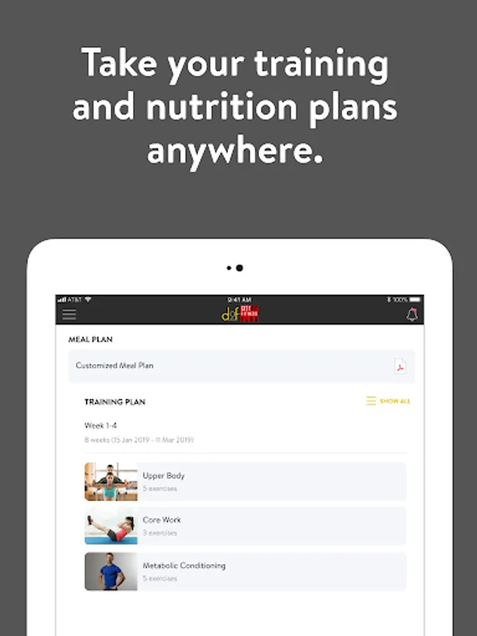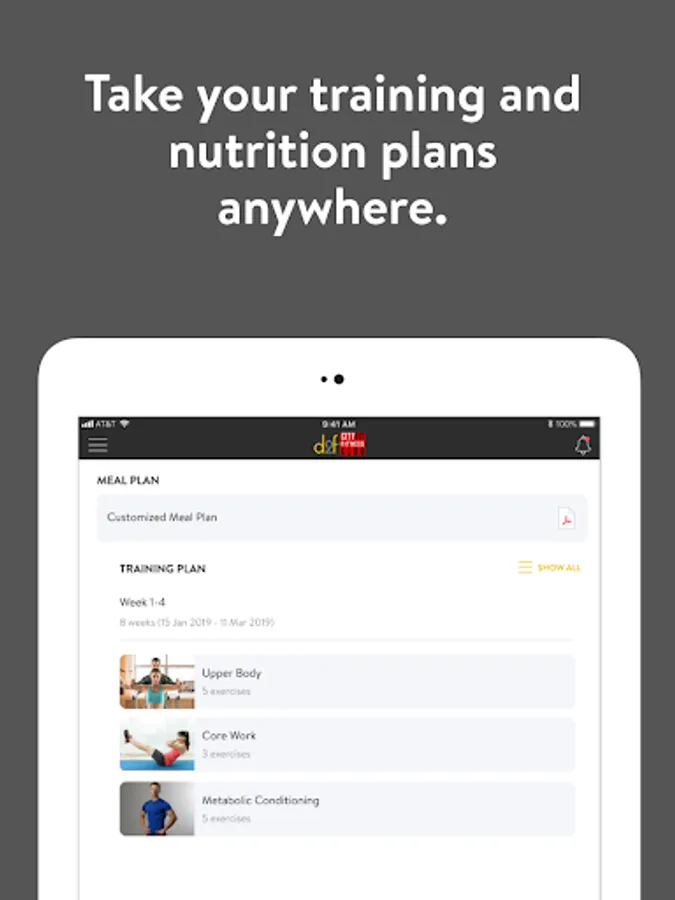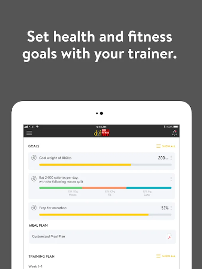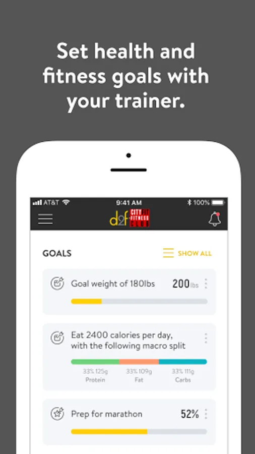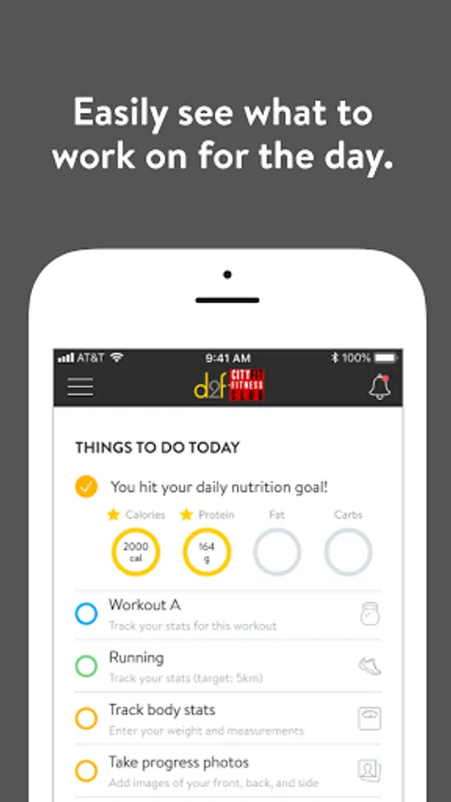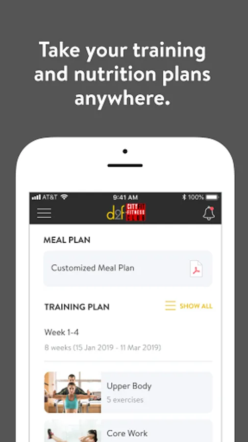 With the D2f Cityfit App, you can start tracking your workouts and meals, measuring results, and achieving your fitness goals, all with the help of your personal trainer.