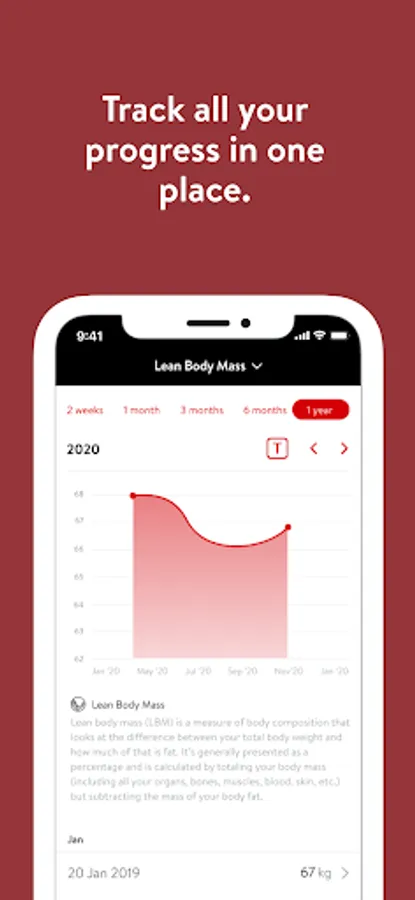 - Track body measurements and take progress photos