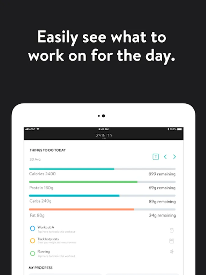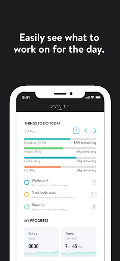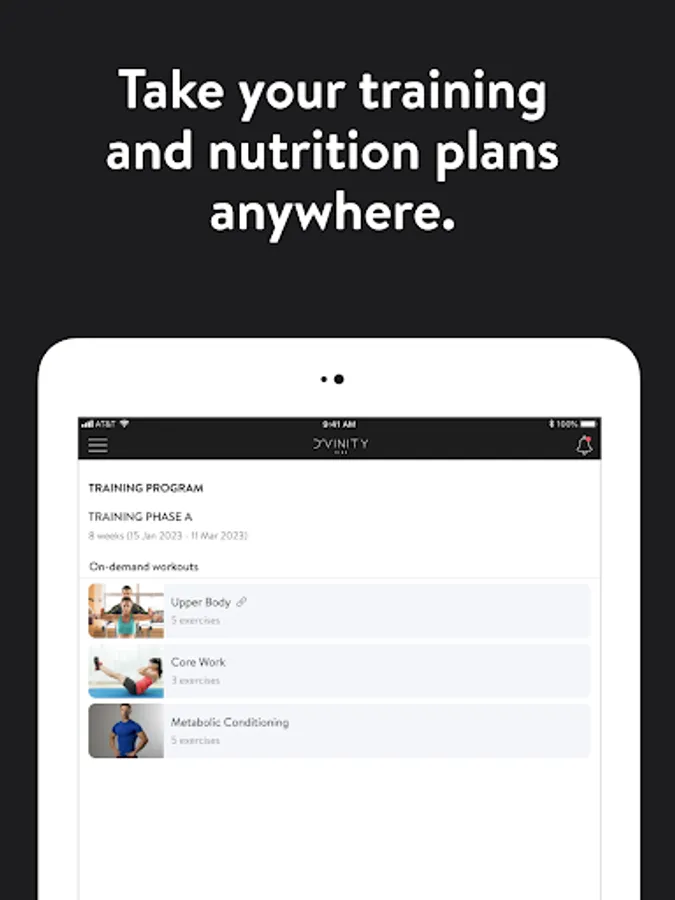 With the DVinity Vibe App, you will have access to wellness programs designed specifically to help you reach your fitness and health goals! You can follow & track your workouts, your nutrition, your lifestyle habits, measurements and results–all with the help of your coach.
