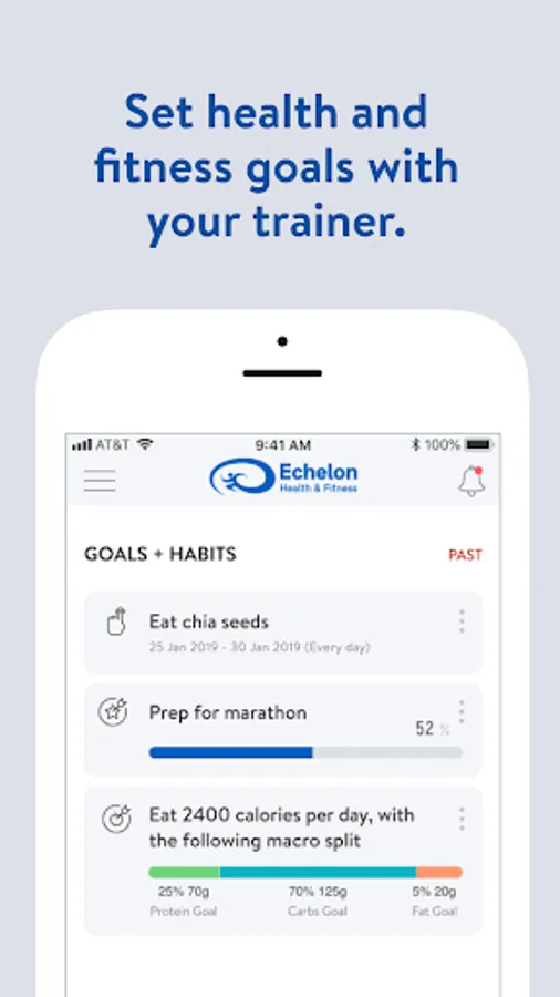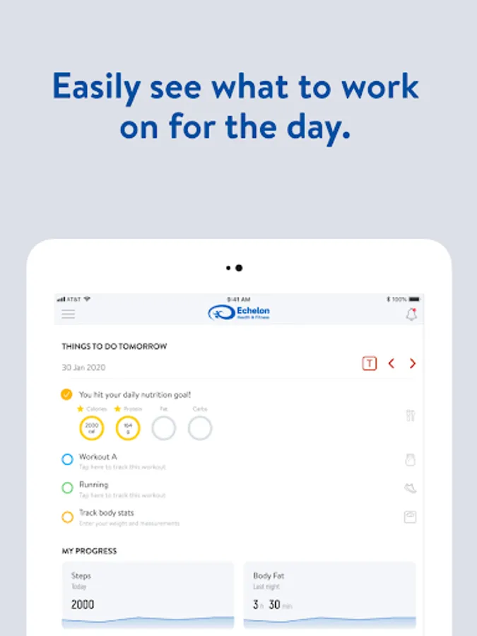 With the Echelon Fitness App, you can start tracking your workouts and meals, measuring results, and achieving your fitness goals, all with the help of your personal trainer.