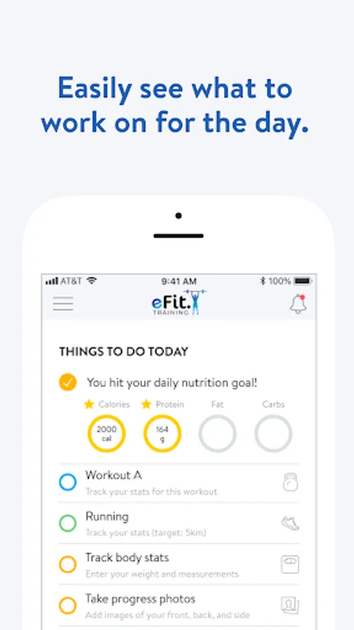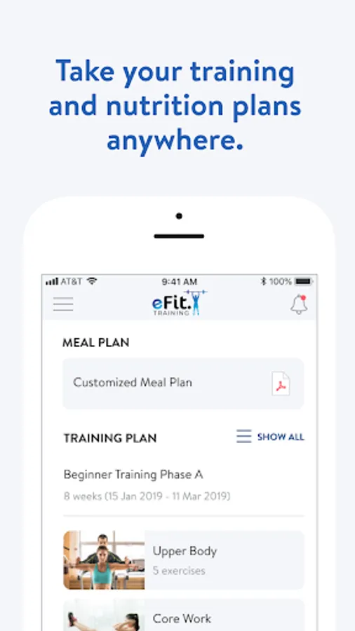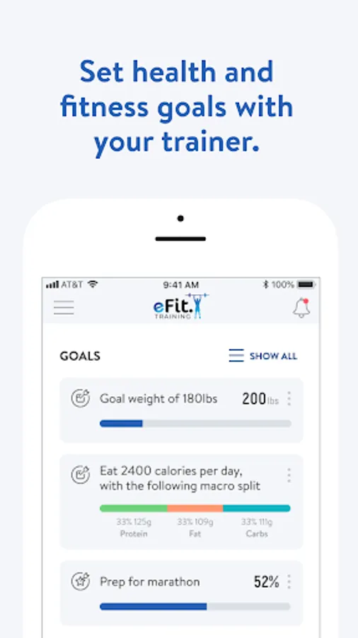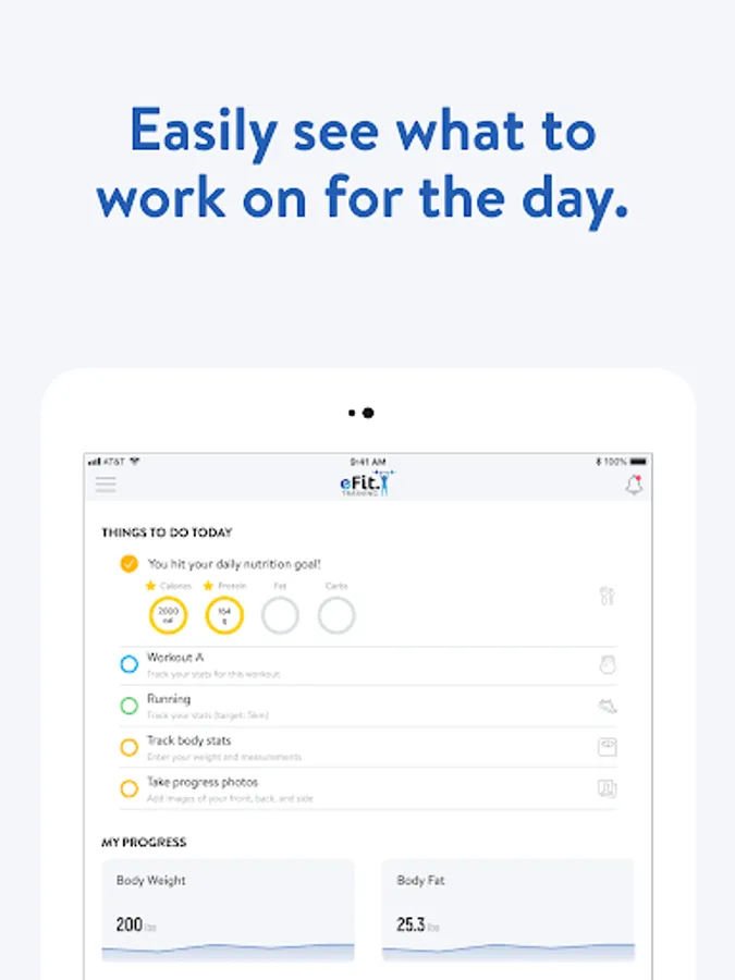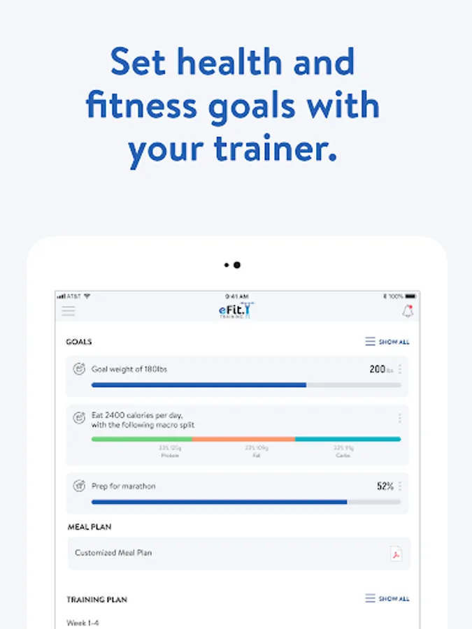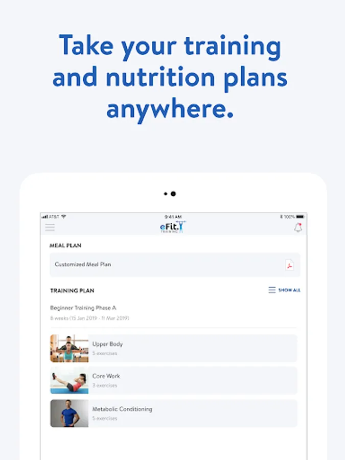 With the eFit Trainer App, you can start tracking your workouts and meals, measuring results, and achieving your fitness goals, all with the help of your personal trainer.