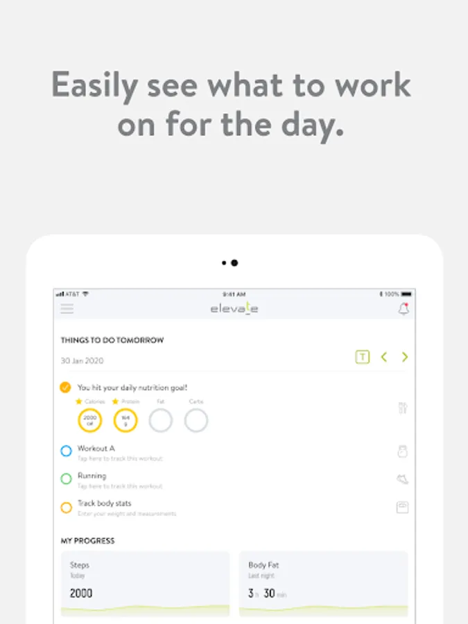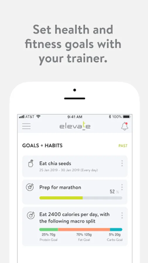 With the ElevatePHW App, you can start tracking your workouts and meals, measuring results, and achieving your fitness goals, all with the help of your personal trainer.