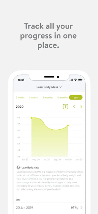 - Track body measurements and take progress photos