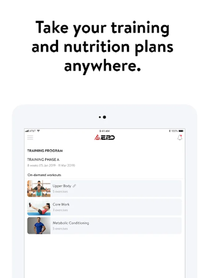 With the EPD Online app, you will have access to workout programs designed specifically to help you reach your conditioning, fitness and health goals! You can follow & track your workouts, your nutrition, your lifestyle habits, measurements and results–all with the help of our team.