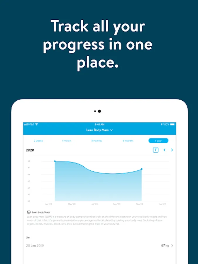 - Connect to wearable devices like Apple Watch (synced to Health app), Fitbit and Withings to sync body stats instantly