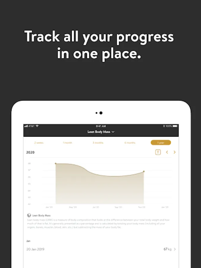 - Connect to wearable devices like Apple Watch (synced to Health app), Fitbit and Withings to sync body stats instantly