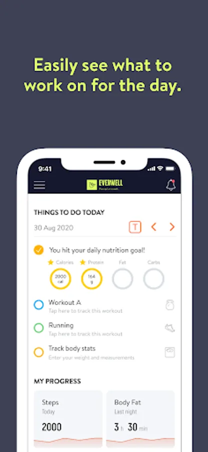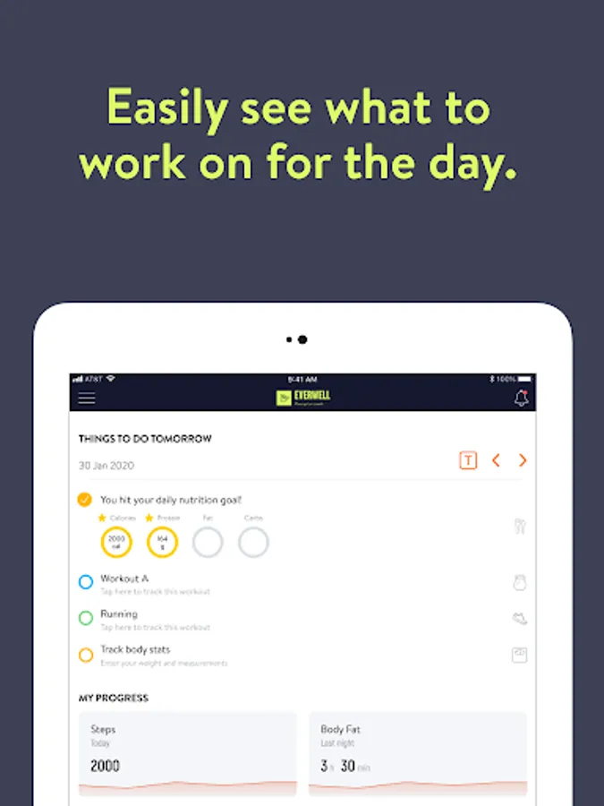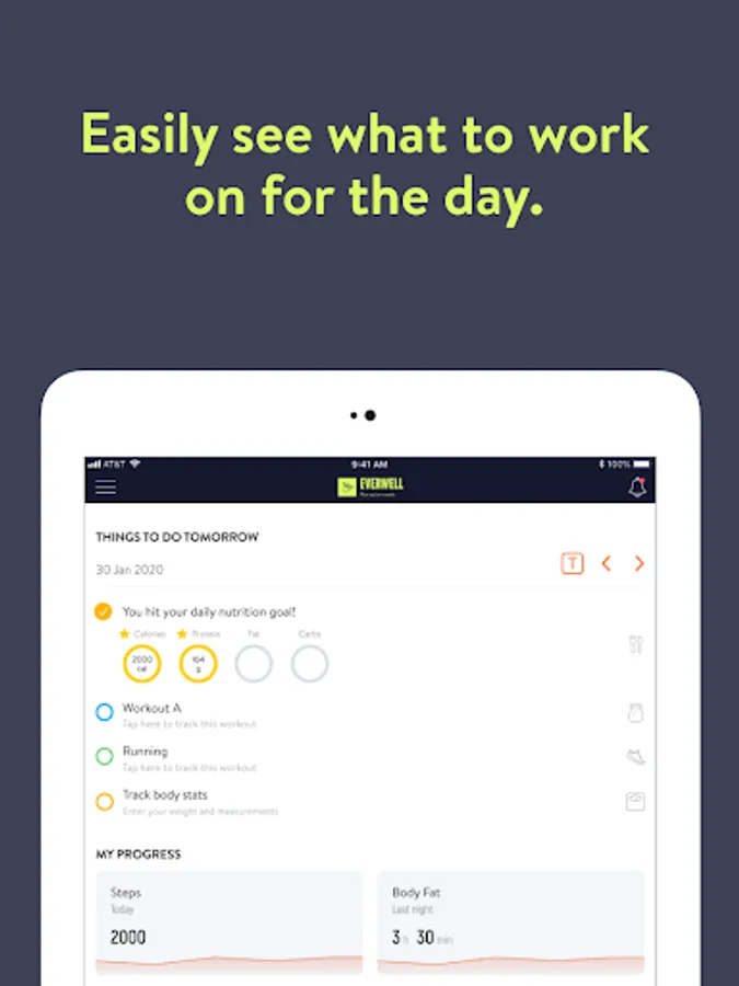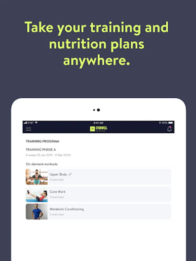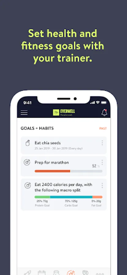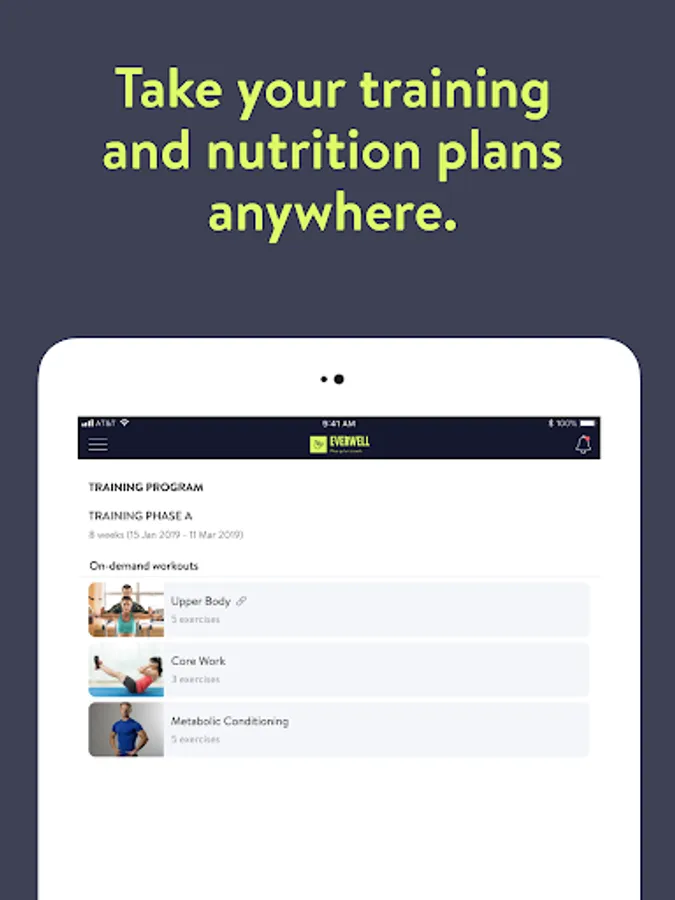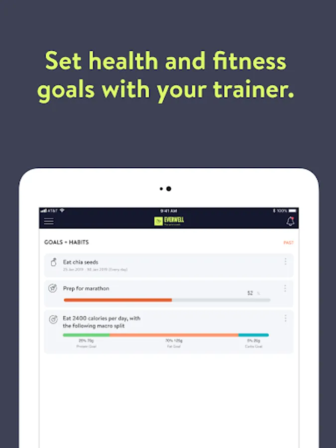 With the Everwell App, you can start tracking your workouts and meals, measuring results, and achieving your fitness goals, all with the help of your personal trainer.