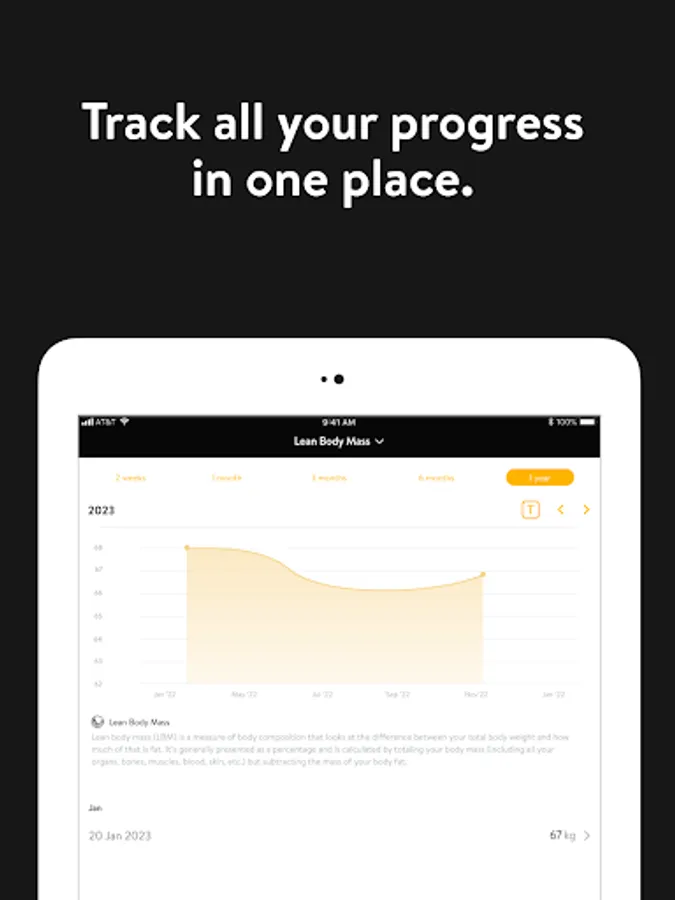 - Connect to other wearable devices and apps like the Apple Health App, Garmin, Fitbit, MyFitnessPal, and Withings devices to track workouts, sleep, nutrition, and body stats and composition