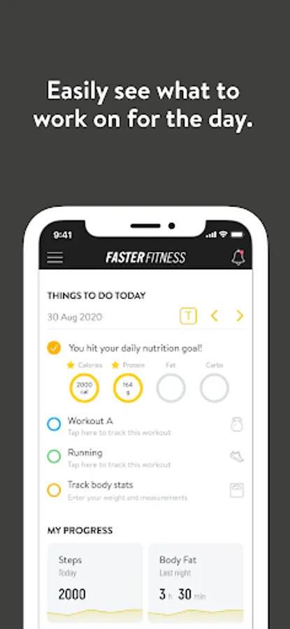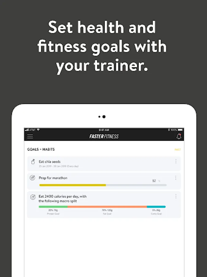 With the Faster Fitness Training App, you can start tracking your workouts and meals, measuring results, and achieving your fitness goals, all with the help of your coach.