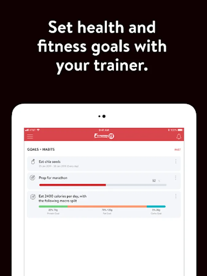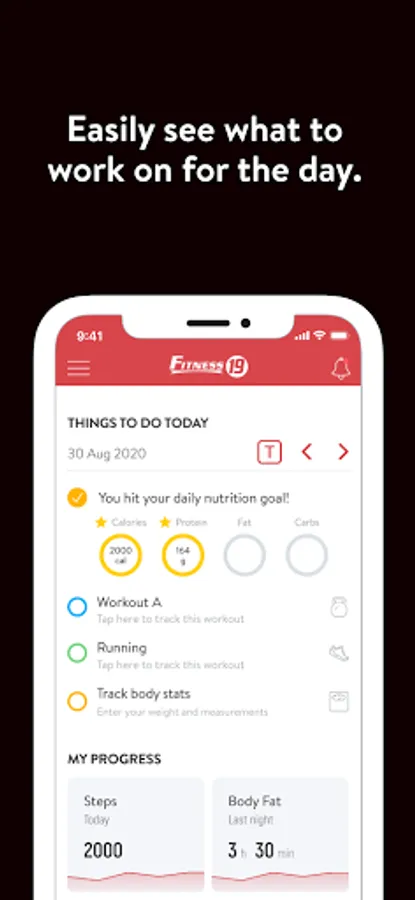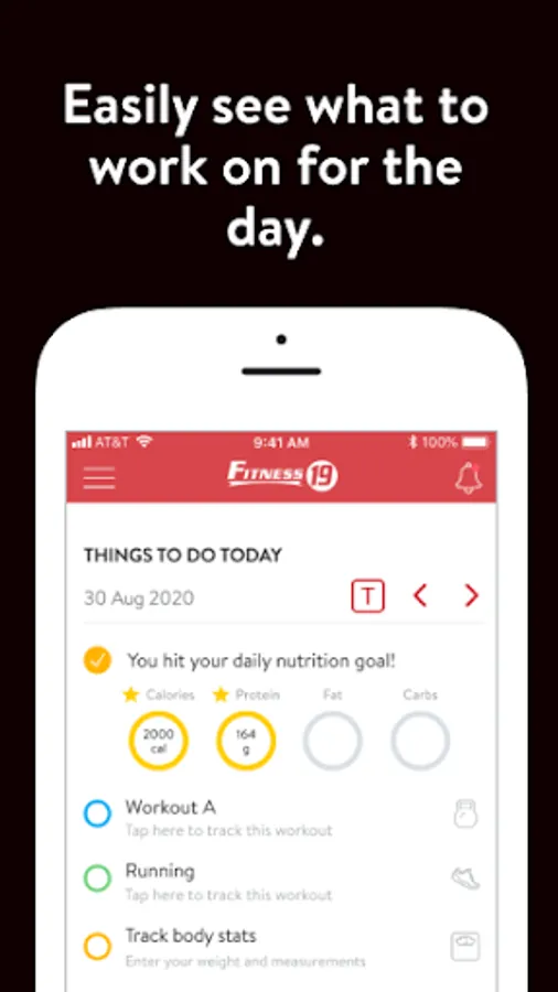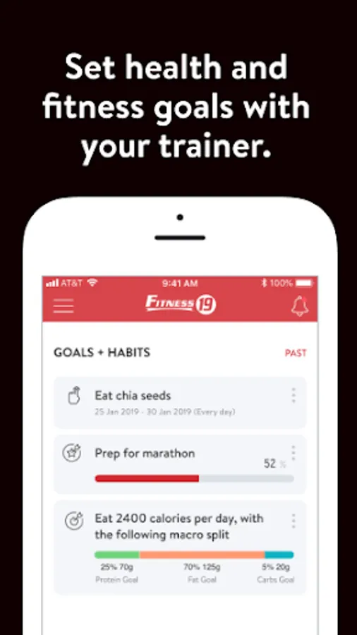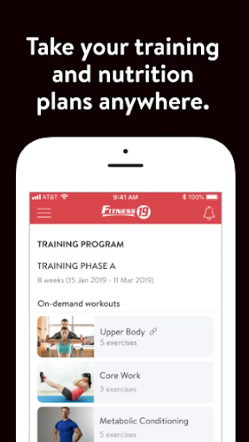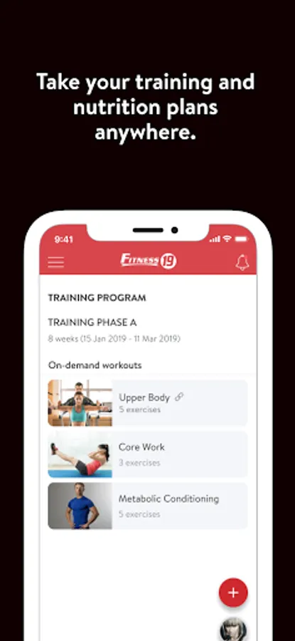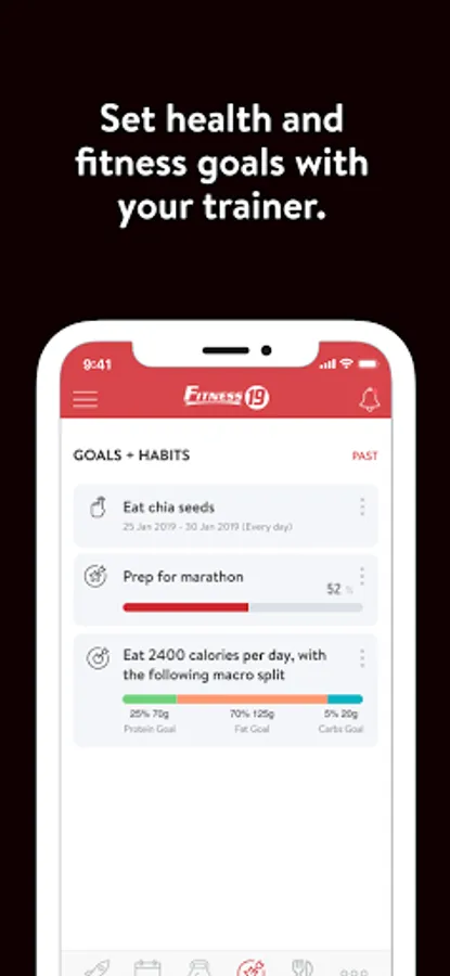 With the Fitness 19 App, you can start tracking your workouts and meals, measuring results, and achieving your fitness goals, all with the help of your personal trainer.