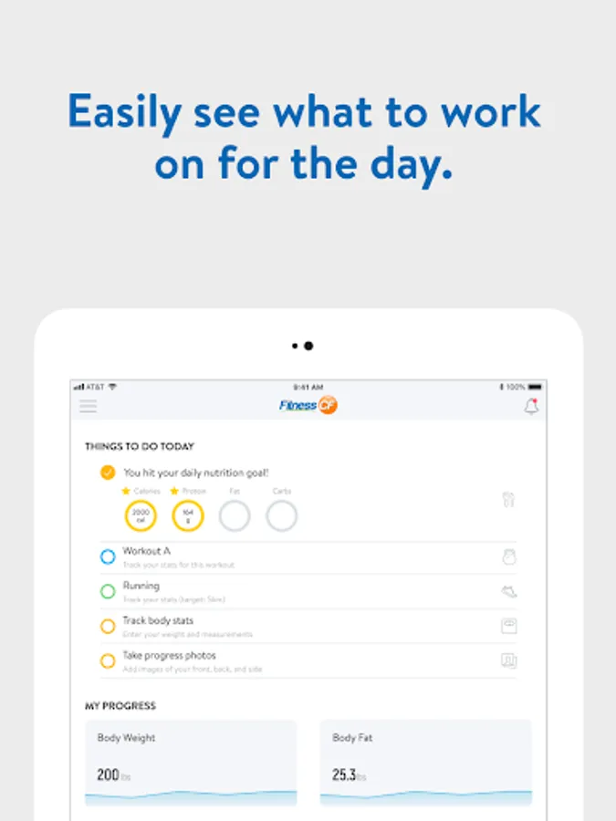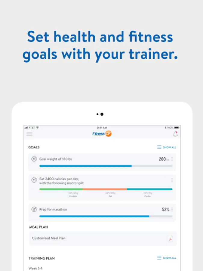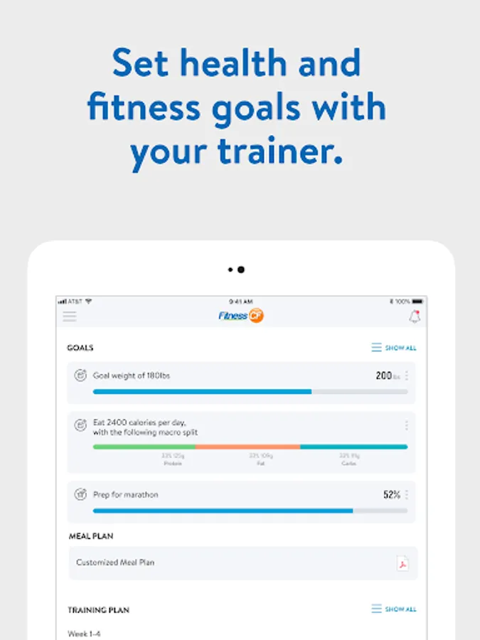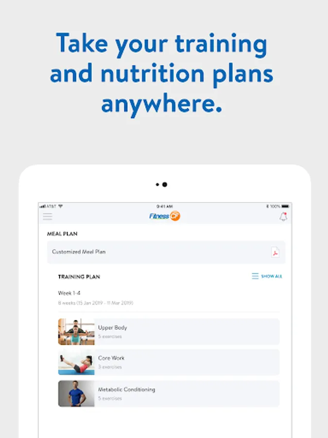 With the Fitness CF App, you can start tracking your workouts and meals, measuring results, and achieving your fitness goals, all with the help of your personal trainer.