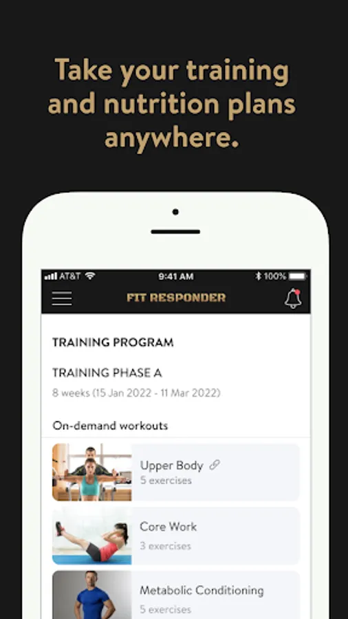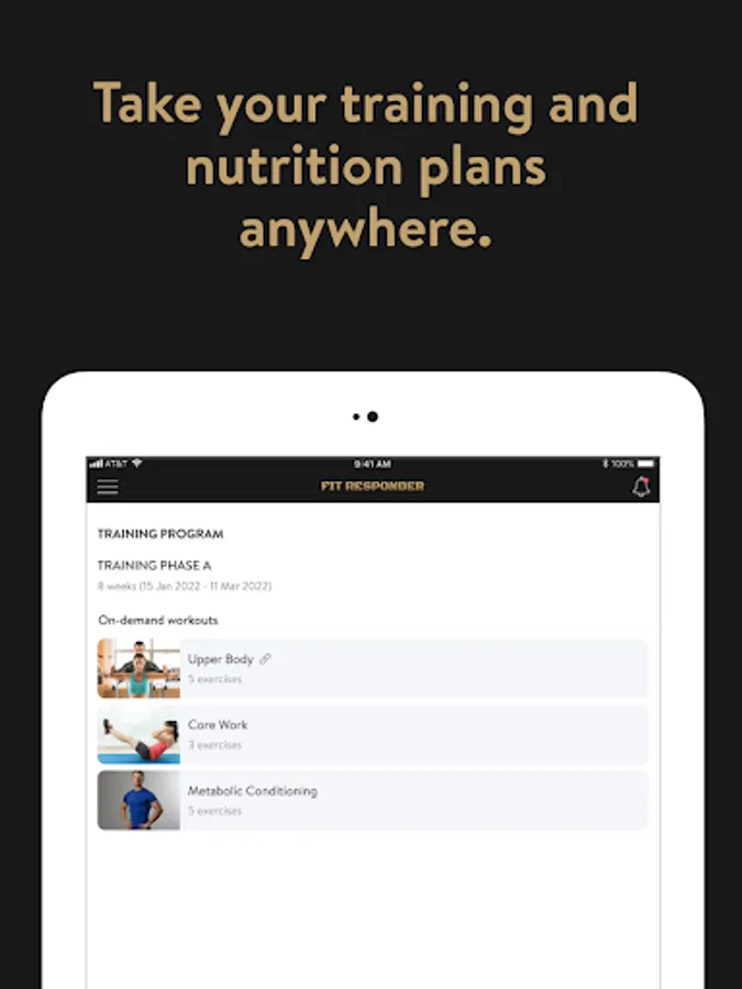 The Fit Responder app will be your main hub to find your customized training program, nutrition guide, and messaging.