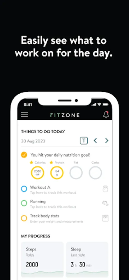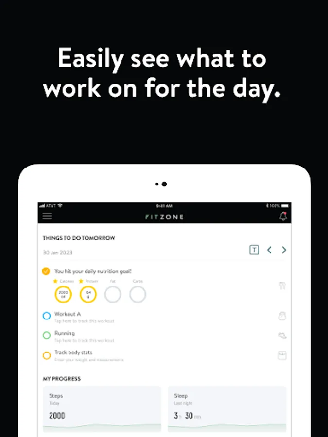With the FitZone 24/7 App, you can access your assigned workout program, start tracking your workouts and meals, measure your results, work on daily habits assigned by your coach and achieve your fitness goals.