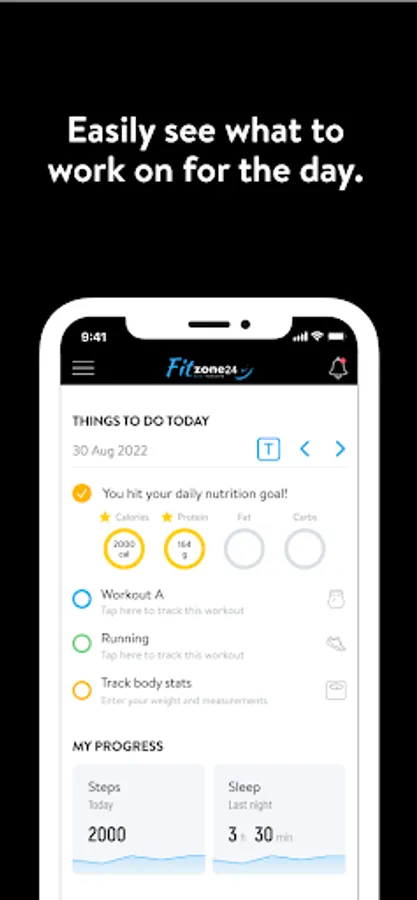 With the Fitzone App, you will have access to workout programs designed specifically to help you reach your fitness and health goals! You can follow & track your workouts, your nutrition, your lifestyle habits, measurements and results–all with the help of your coach.