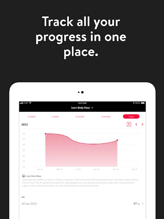 - Connect to other wearable devices and apps like the Apple Health App, Garmin, Fitbit, MyFitnessPal, and Withings devices to track workouts, sleep, nutrition, and body stats and composition