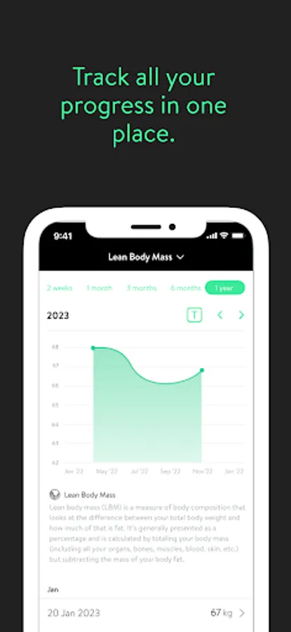 - Track body measurements and take progress photos: Record body measurements and take photos to track your physical progress.