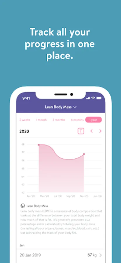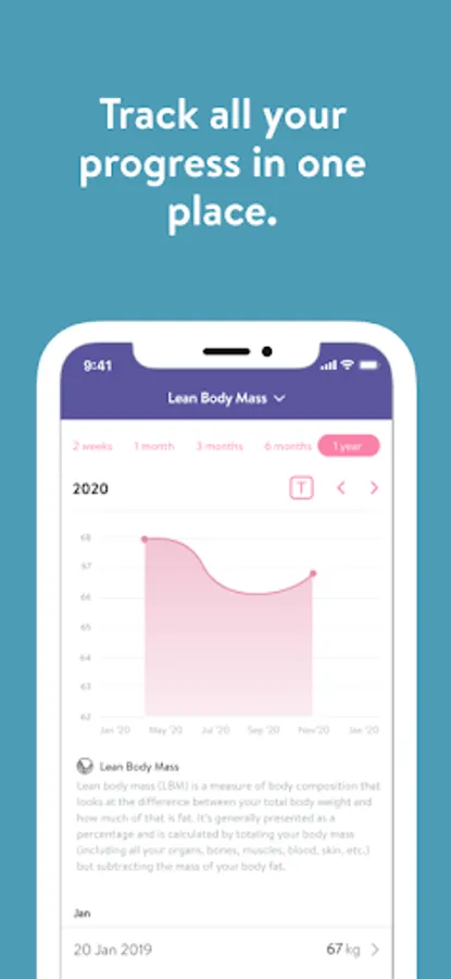 - Track body measurements and take progress photos