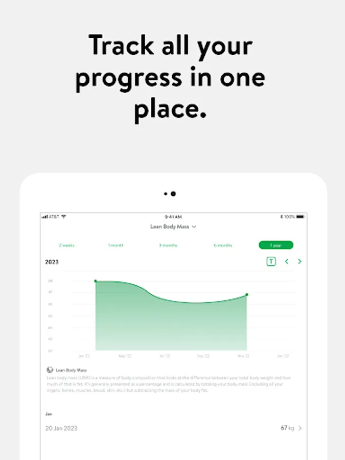 - Connect to other wearable devices and apps like the Apple Health App, Garmin, Fitbit, MyFitnessPal, and Withings devices to track workouts, sleep, nutrition, and body stats and composition