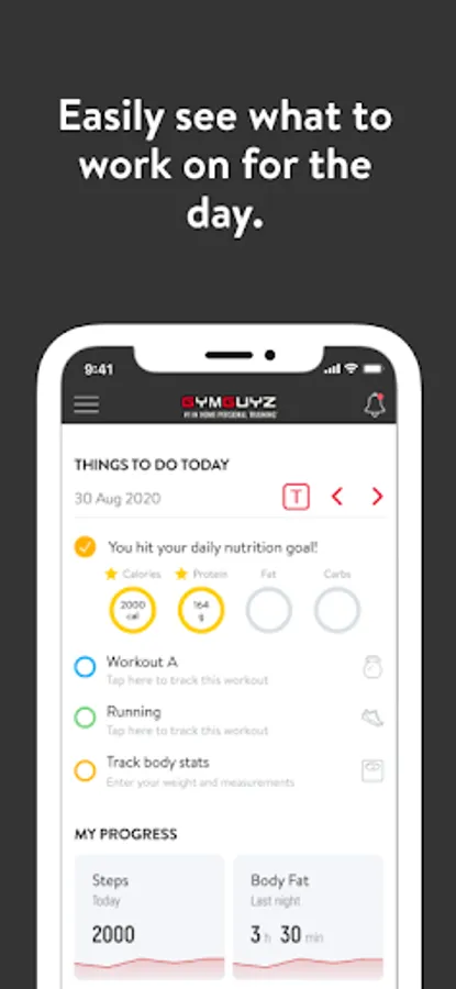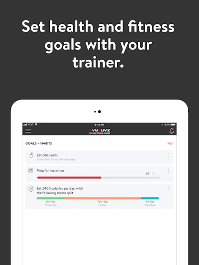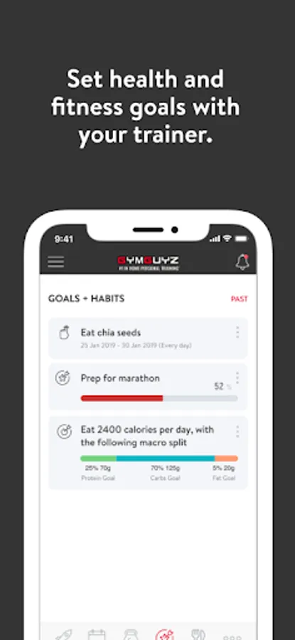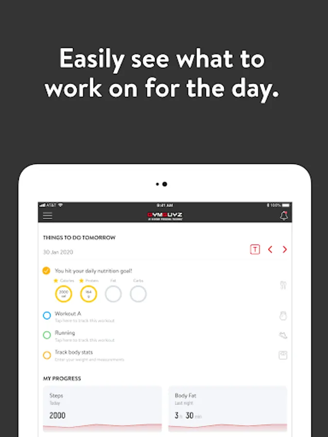 With the GYMGUYZ App, you can start tracking your workouts and meals, measuring results, and achieving your fitness goals, all with the help of your personal trainer.